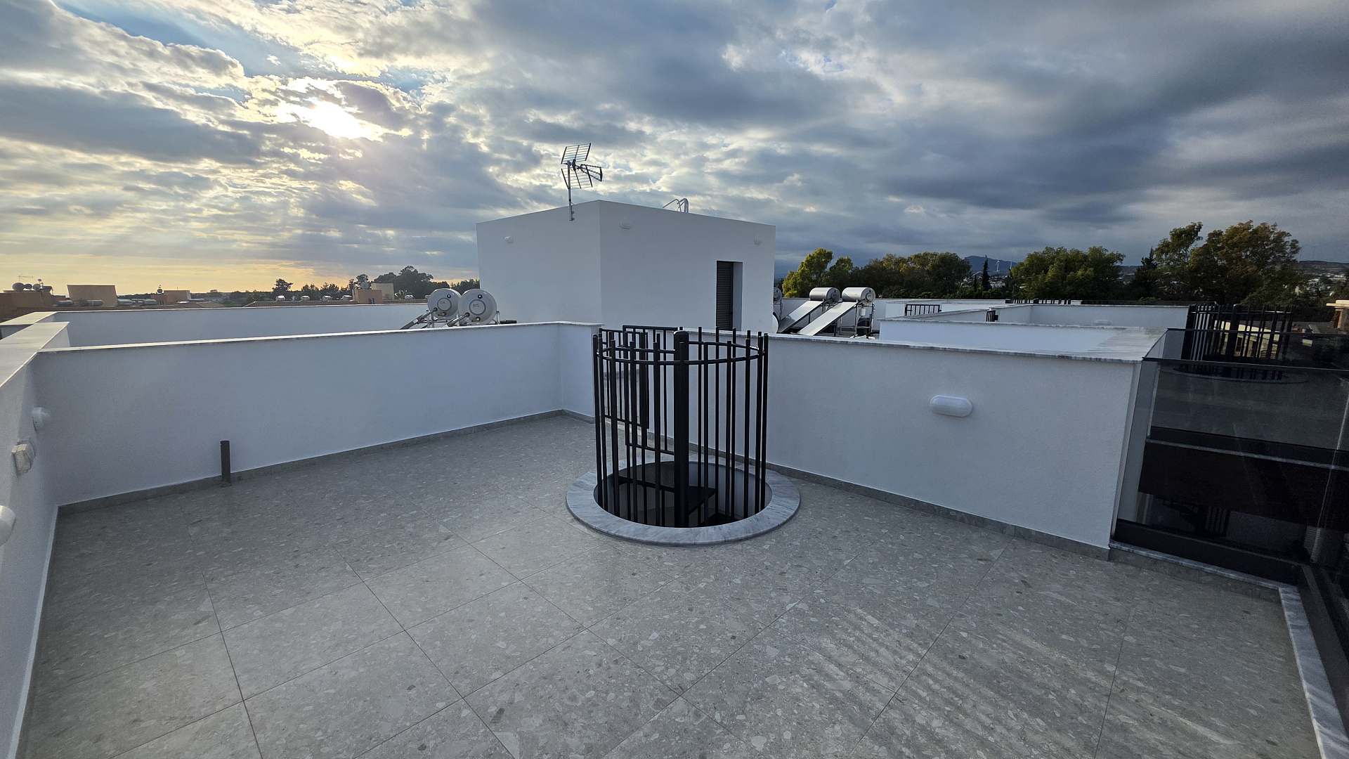 For sale 2 bedroom penthouse in the area of Kiti, Larnaca. The apartments are in the final stage of completion of all works. High-quality finishing materials and plumbing were used in the construction. A living room with an open-plan kitchen-dining area, two bedrooms with large fitted wardrobes, two shower rooms, a covered veranda, and a private roof garden of 23m2. The penthouse is equipped with a photovoltaic system, which will ensure low energy bills. The project provides a covered parking and a storage room. A beautiful and peaceful place to stay. There is a park with a playground within walking distance. The entire infrastructure of the area is 3-5 minutes away by public transport. Just 17 minutes from the center of Larnaca and 9 minutes from the airport.
