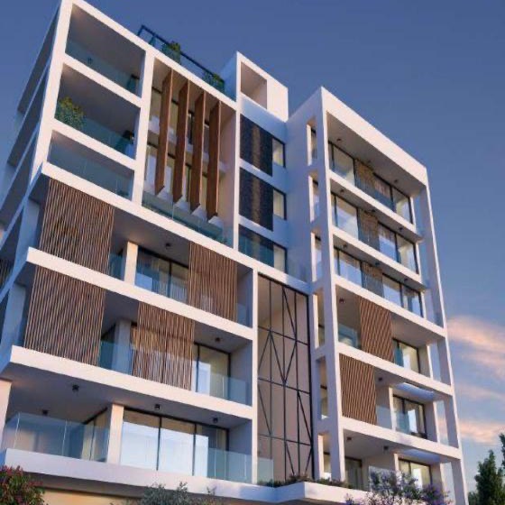 Three bedroom apartment for sale in Acropolis, Nicosia. The residential complex is being built on a large corner plot (approximately 800 sq. m.), with a high level offering beautiful views of the city. The building consists of nine apartments spread over seven floors. The first level is a stylish space with a modern entrance, landscaping and landscaped gardens. Parking spaces and storerooms are located on the ground and basement floors.