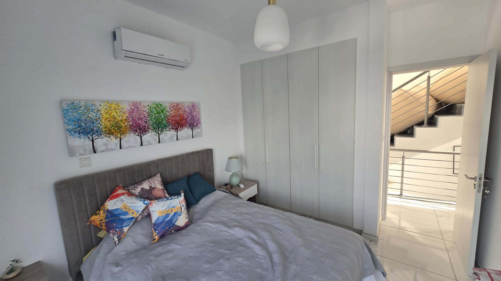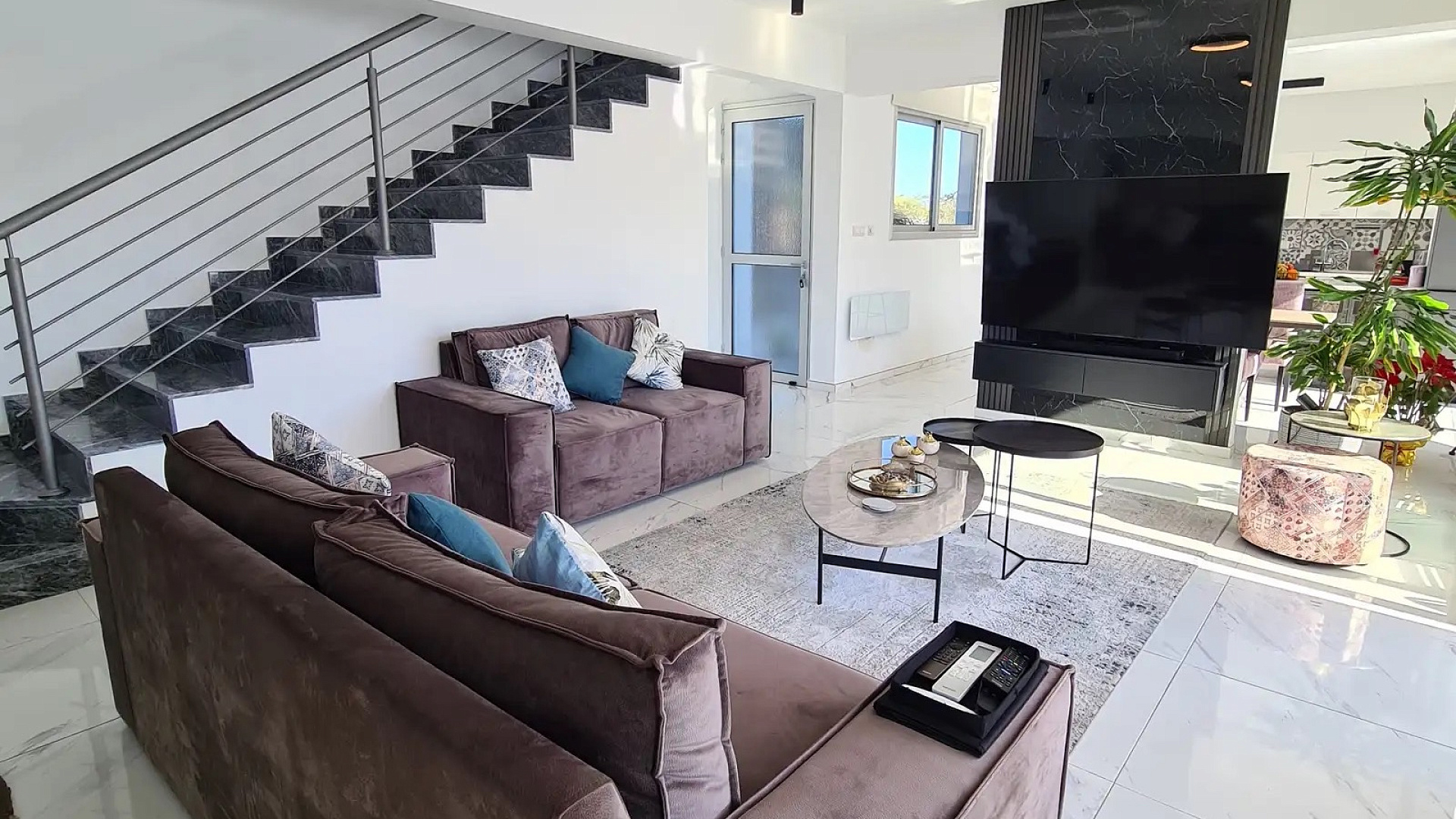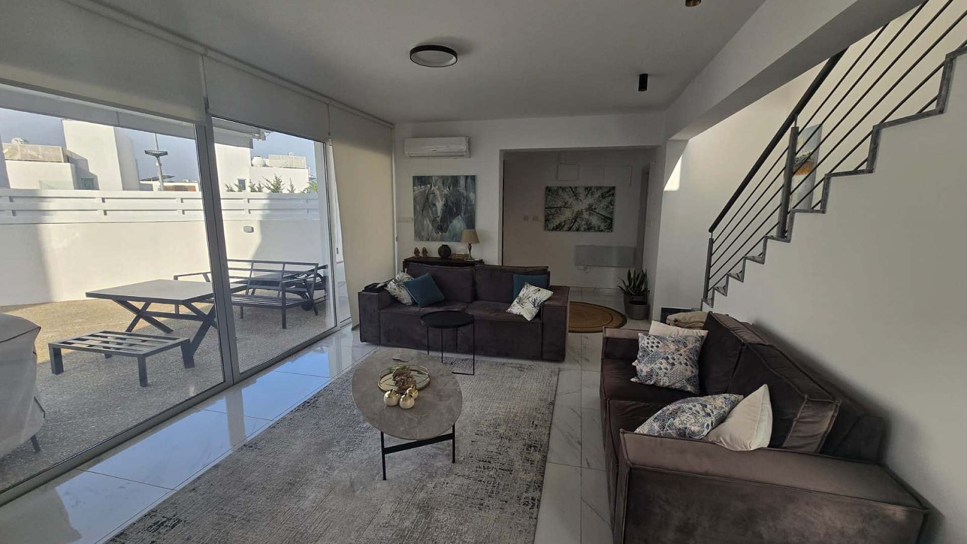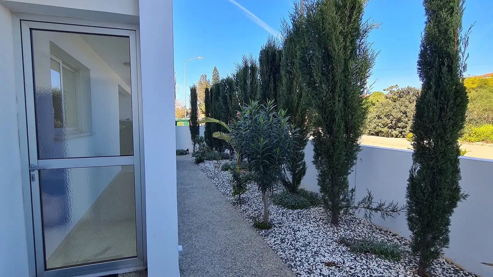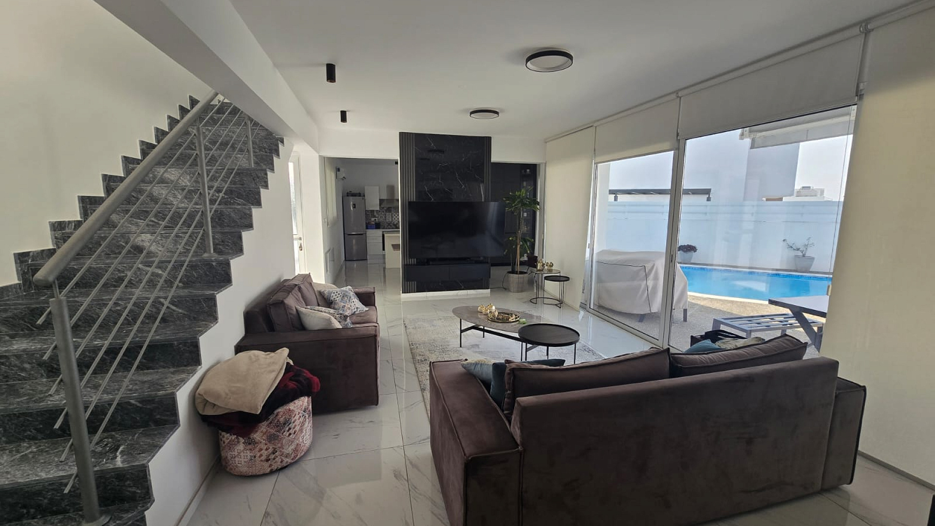 Three-bedroom house of 193 m2 for sale on a plot of 303 m2 in Agia Napa area, Famagusta city. The house includes three bedrooms, two bathrooms, three bathrooms, two showers, one living room, one kitchen, balconies, an open veranda, a roof with a terrace, a private pool, a garden and a covered parking for one car. The house was built in 2020, has energy efficiency class A and consists of three floors. The covered area is 191 m2, the outdoor verandas are 90 m2, and the roof garden is 110 m2. The house is fully furnished and equipped with an air conditioning system in all rooms, infrared heating panels, photovoltaic panels, as well as all necessary household appliances and engineering systems. The property is located in Agia Napa overlooking the sea, in close proximity to beaches, restaurants and urban infrastructure of the resort.