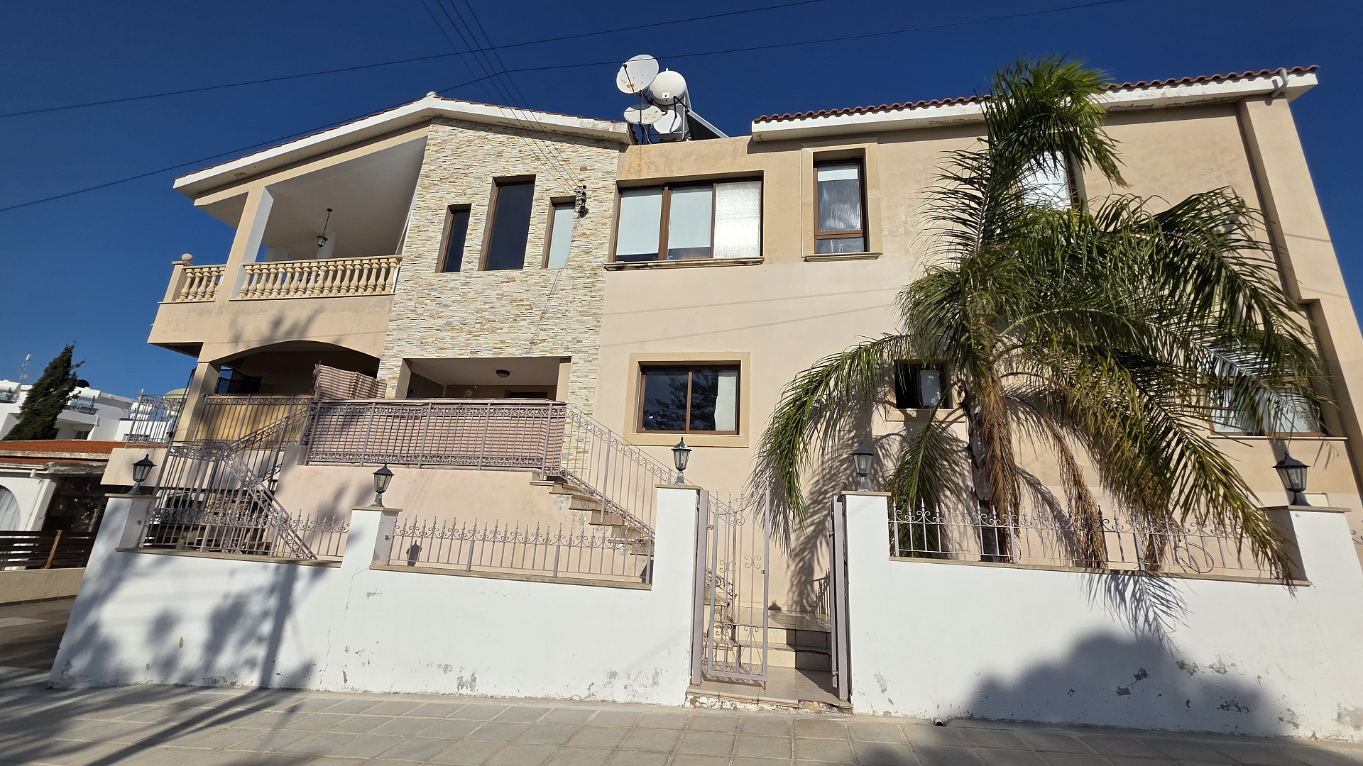An investment residential property with a total area of 498 m2 is for sale in the Chloraka area, Paphos city. The property includes 4 independent residential units: one three-bedroom apartment, two two-bedroom apartments and one studio apartment, with parking spaces and storage rooms, as well as separate titles of ownership for each object. The facility was built in 2006. The residential complex is located in an elevated area, a short drive from the sea and the center of Paphos, while some apartments offer sea views. The property is ideally suited for an investment project with the possibility of renovation, obtaining a stable rental income.