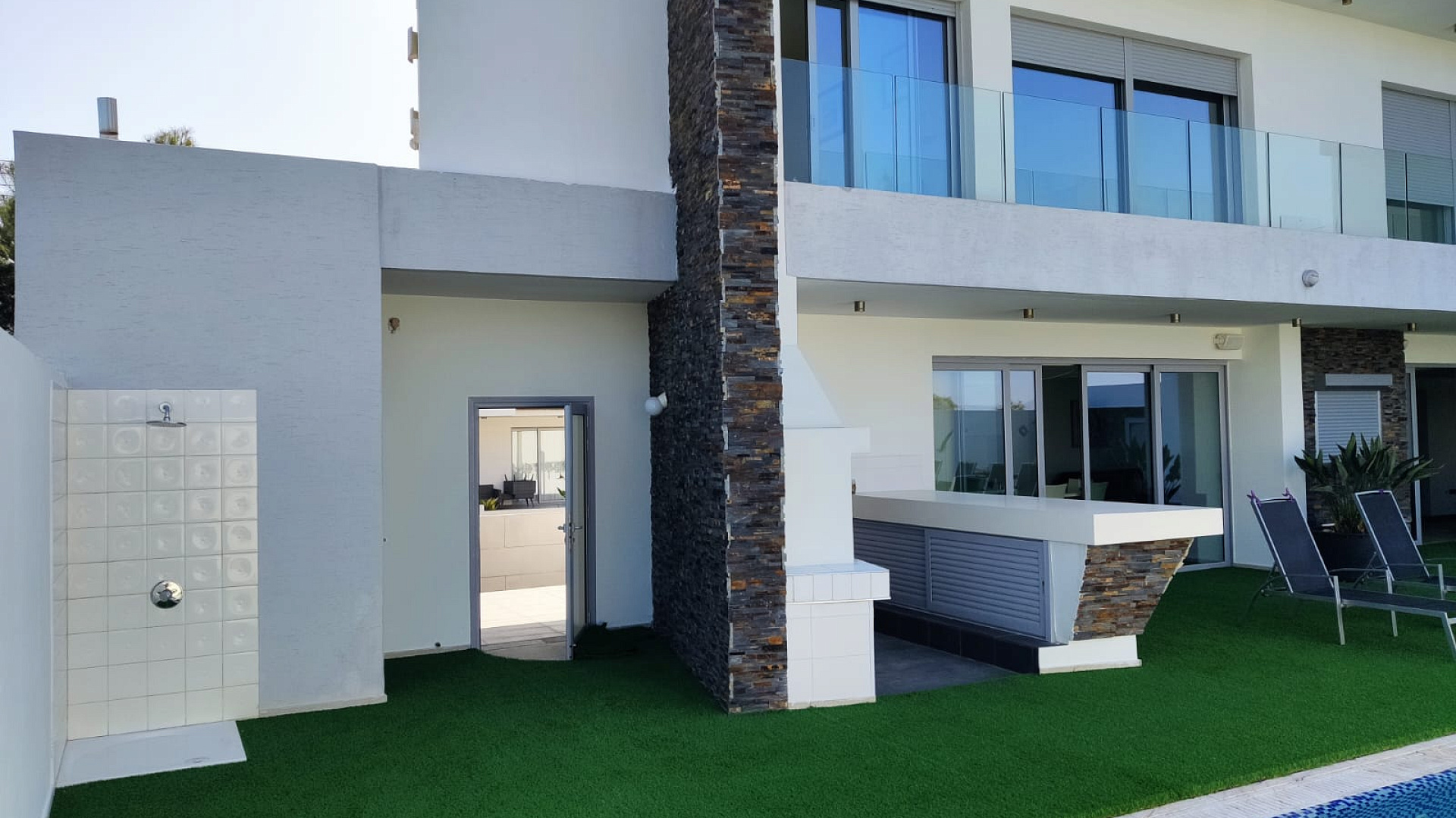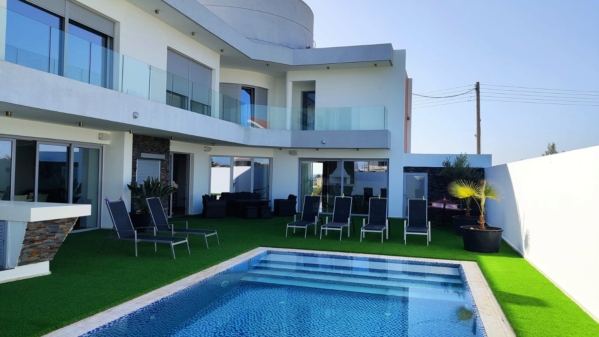 Unique villa for sale in Livadia, Larnaca. Panoramic view of the sea, which is only 1000 meters away. The ground floor is open plan, consists of a large kitchen, a living room with a fireplace and a sitting area, a guest bathroom. On the second floor there are 4 bedrooms, as well as a laundry room. All bedrooms have access to a balcony overlooking the pool. Also on the 2nd floor there is a loft with a beautiful view. Separately, you can select: a service room next to the house in which there is a bathroom, 2 covered Parking spaces with remote control gates. The main entrance is equipped with a communication system, which is available on the entire 1st floor of the villa. All windows and glass elements on the doors are bulletproof. And there is also an external and internal alarm system. 10 minutes drive to the center of Larnaca, quick access to the highway. The sea is about a 5-minute drive away.