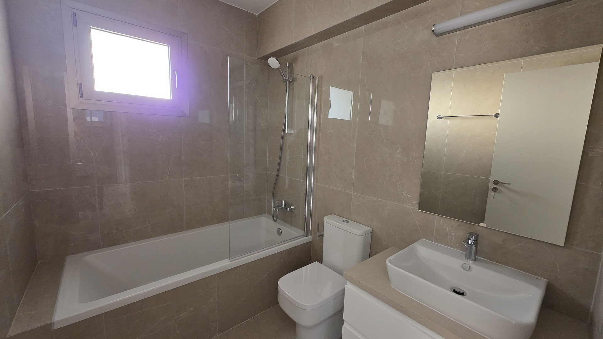 Two-bedroom apartment with sea view for sale in Universal area, Paphos, with a total area of 113 m2, including a covered living area of 95 m2 and a covered veranda of 18 m2. The apartment offers a spacious and open-plan living-dining room filled with natural light with access to a balcony with panoramic views. The master bedroom has its own en-suite bathroom with a bathtub, the second bedroom is serviced by a separate modern shower, while the rear bedroom has access to a private balcony. The facility is located in a gated residential complex with a well-maintained territory and developed infrastructure, including communal and children's pools, a fully equipped gym and green areas. The convenient location provides quick access to the tourist area and the Paphos harbor, Kings Avenue Mall, restaurants, shops and the coast, which makes the apartment an excellent option for both comfortable living and investment.
