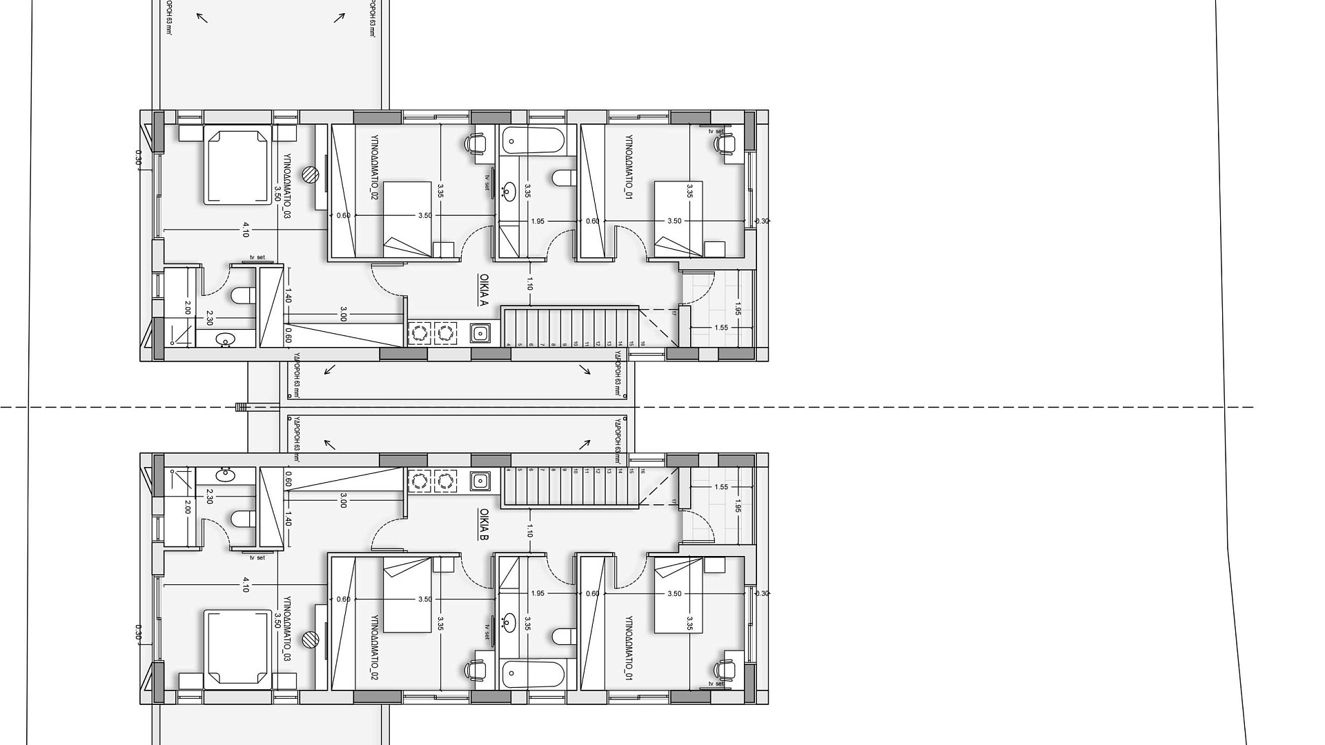 On the ground floor there is a spacious living room, a kitchen and a dining room, a guest toilet with a shower, as well as a double covered garage. At the request of the buyer, it is possible to arrange a separate office space, which is especially convenient for working from home. The layout of the ground floor is designed in such a way as to ensure maximum comfort in everyday life.