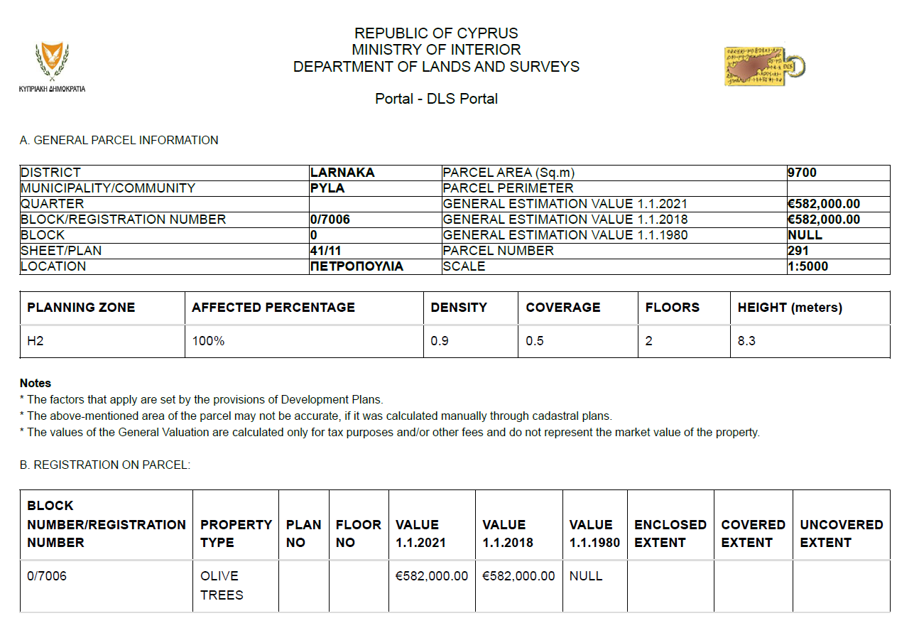 Land for sale with an area of 9700 m2, located behind UCLan University in the area of Pyla, Larnaca. The plot is located in the planning zone N2, with a permitted building area of 100%, a density of 90%, a building coefficient of 50%, the possibility of building up to 2 floors and a maximum height of 8.3 m.
