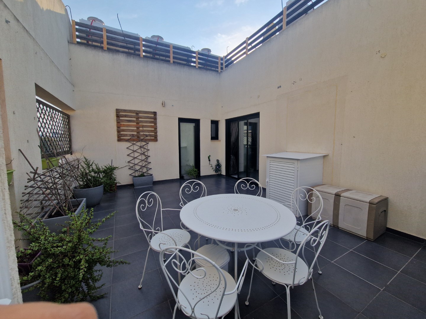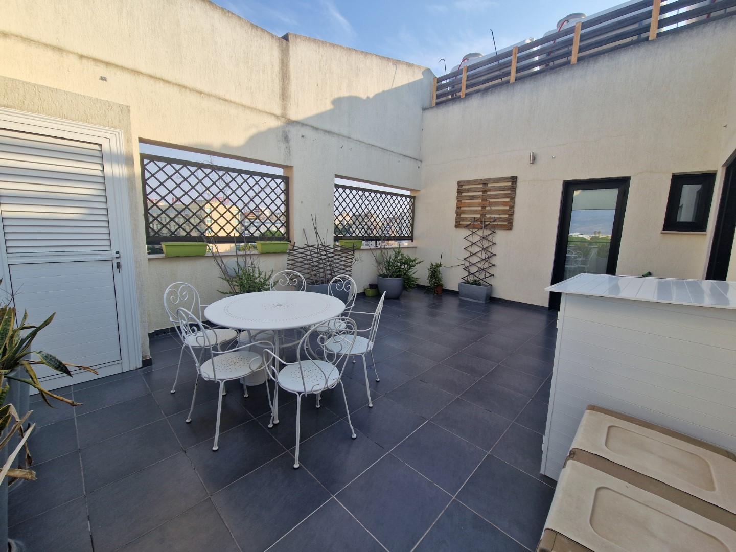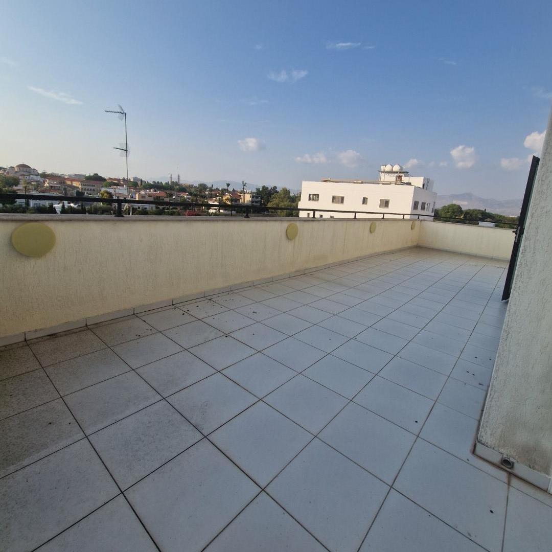For sale a three-bedroom penthouse in the area of City Centre, Nicosia, with an internal area of 120 m2 with a covered veranda of 20 m2 and a private roof garden of 60 m2, located in a house built in 2010. The penthouse includes three bedrooms and three bathrooms, a covered parking space and a storage room. There is a title of ownership.