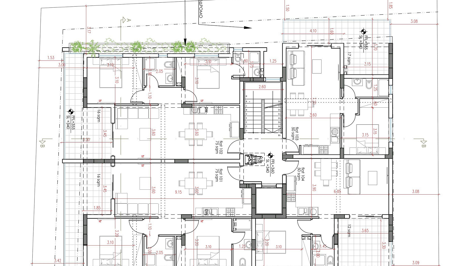 The building is made of reinforced concrete construction in compliance with antiseismic standards. The decoration uses ceramic floor coverings, marble or granite surfaces, as well as high-quality wooden interior elements, including built-in wardrobes and kitchen structures.