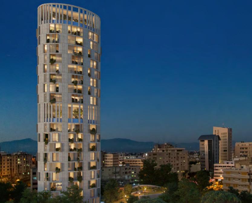 A unique high-rise complex located in the heart of Nicosia. Apartments range from functional single apartments to apartments that occupy an entire floor. All residences are luxuriously furnished. The tower provides residents with views of the city landscape and is surrounded by shops, restaurants and cafes. The outer shell is a unique dynamic facade system that provides protection from the sun. The project was designed to accommodate residential apartments of various sizes, including an exclusive penthouse on three upper levels with a garden, swimming pool and other amenities. All apartments have unobstructed views and sunlight all year round. At the entrance to the building there is a two-level reception area with a living room and a coffee area. In the middle part of the tower, residents will be able to use a two-level wellness area, which will include a communal swimming pool, gym and spa, yoga and Pilates studio. In addition, residents will have access to a concierge service that will take care of all their daily needs. The recently renovated central park on the site of the old GSP stadium is also located nearby.