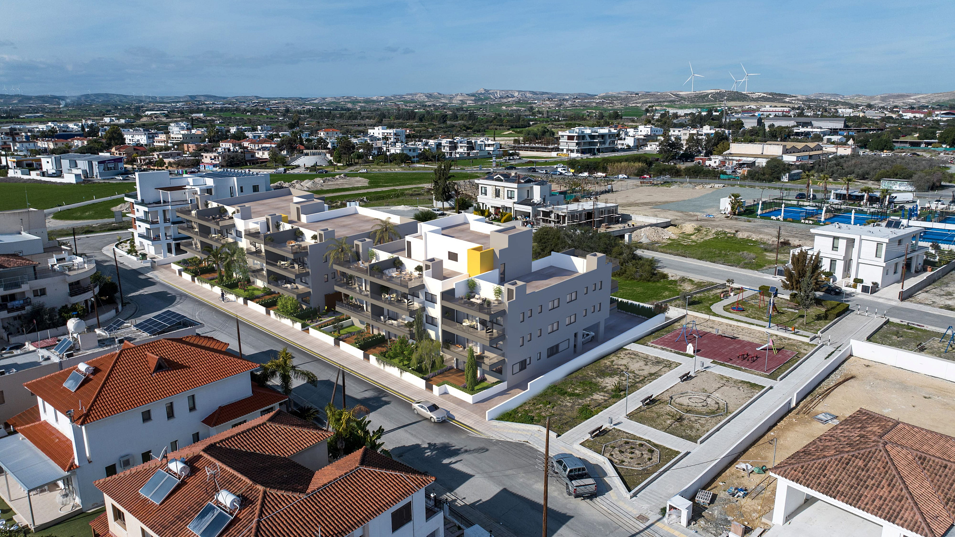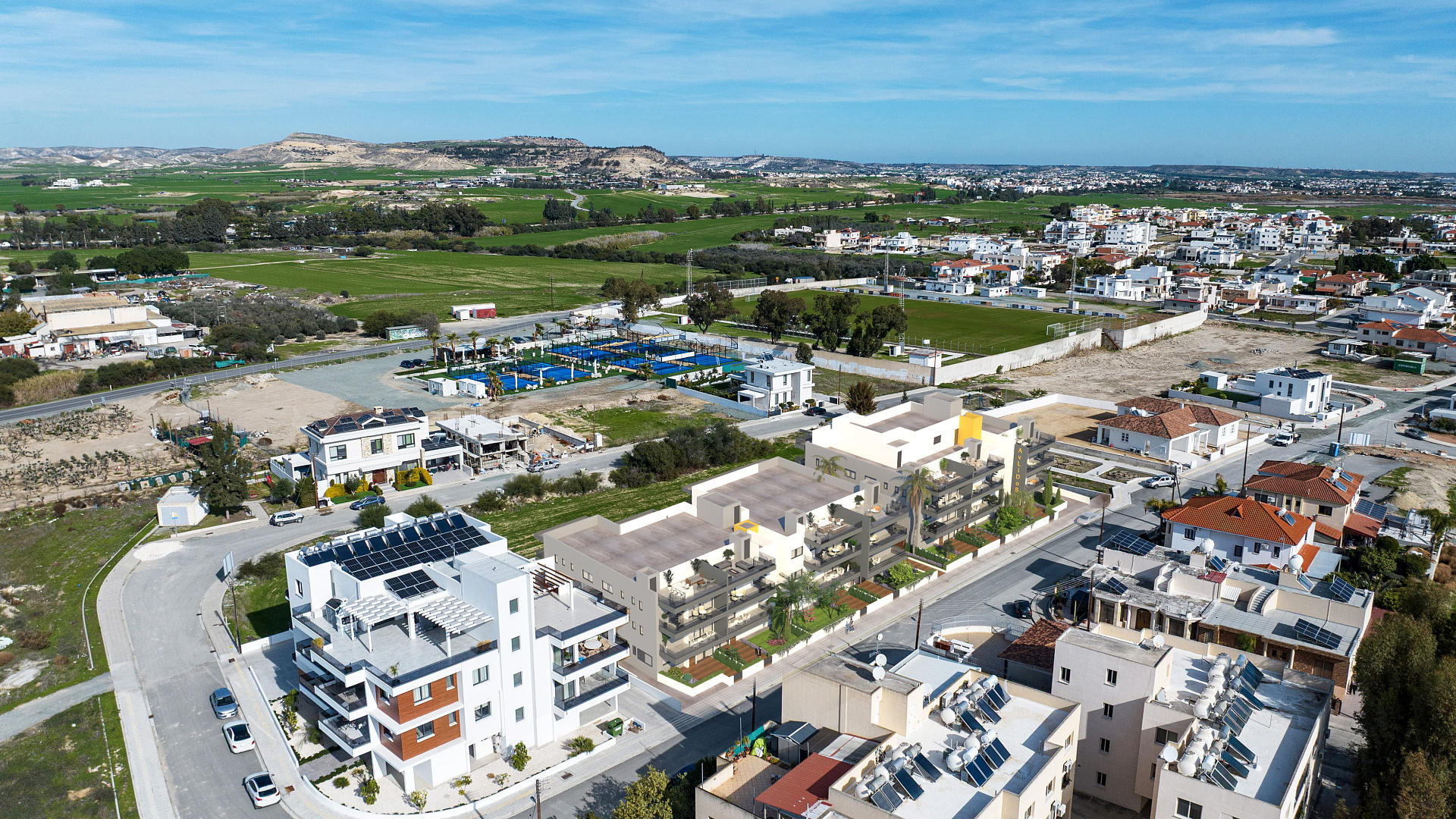 Apartment for sale in Livadia, Larnaca. The apartment is located in a modern residential complex of new construction and is made using high-quality construction and finishing materials. The project provides for a reinforced concrete frame, thermal insulation of exterior walls, aluminum windows and doors with double glazing, ceramic tiles in residential areas and bathrooms, as well as modern plumbing. The apartment is equipped with a solar water heating system and preparation for the installation of air conditioners. The property has a veranda, parking space and provides comfortable living in a peaceful area with quick access to the center of Larnaca, shops, schools and major highways, making it an excellent option for both living and investment.