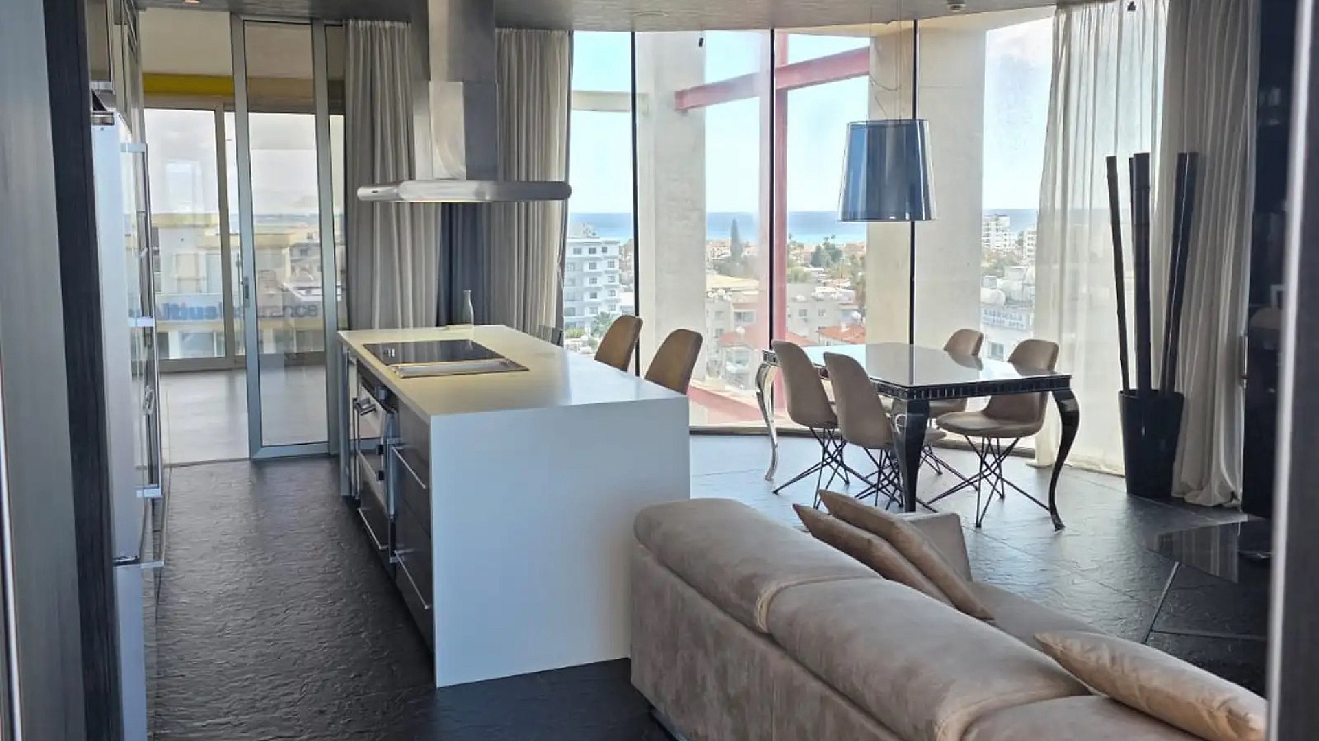 For sale 1-bedroom penthouse with an area of 196 m2 in the area of Skala, Larnaca. The penthouse includes 1 bedroom, a bathroom with WC, a spacious open-plan living room, a modern kitchen, a balcony with a private pool, and a storage room. The apartment is located on the 6th floor. The property is fully furnished and equipped with household appliances, including premium kitchen appliances, air conditioning in all rooms, high-quality surround sound cinema system, alarm system, elevator in the building, covered parking, as well as a private pool on the balcony. The year of construction is 2012. The penthouse has panoramic sea views from all rooms thanks to floor-to-ceiling windows providing maximum natural light and uninterrupted seascapes. The residence is characterized by a high level of privacy, modern minimalist bathroom design, elegant kitchen furniture, exquisite finishes and thoughtful layout, which makes the property suitable for permanent residence, as well as as a prestigious investment or luxury vacation home.