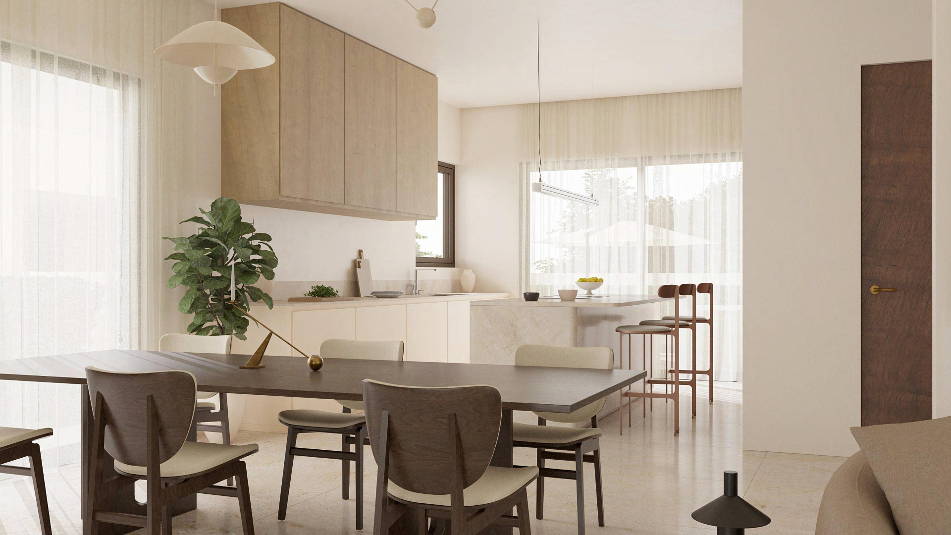 Apartment for sale in Fasoula, Limassol. This is a new residential complex just a few minutes from the center of Limassol, designed for those who are looking for a more relaxed lifestyle without losing touch with the city. The project includes a two-storey residential building with six apartments and four private houses.