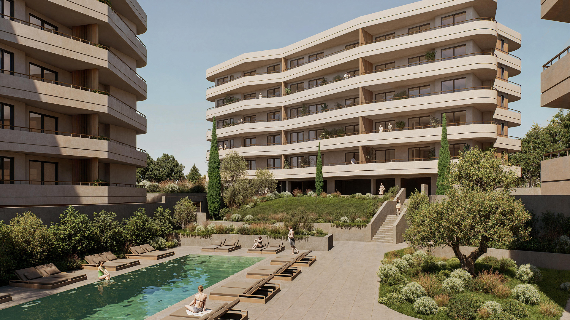 The complex has well-maintained common areas with relaxation areas and greenery, an outdoor swimming pool for relaxation and relaxation of residents, a fully equipped gym for daily fitness classes, a sauna and a wellness center for restorative treatments, a coworking lounge, ideal for remote work and study, a children's playground and outdoor activities an outdoor, secure area with internal access roads and controlled entry.