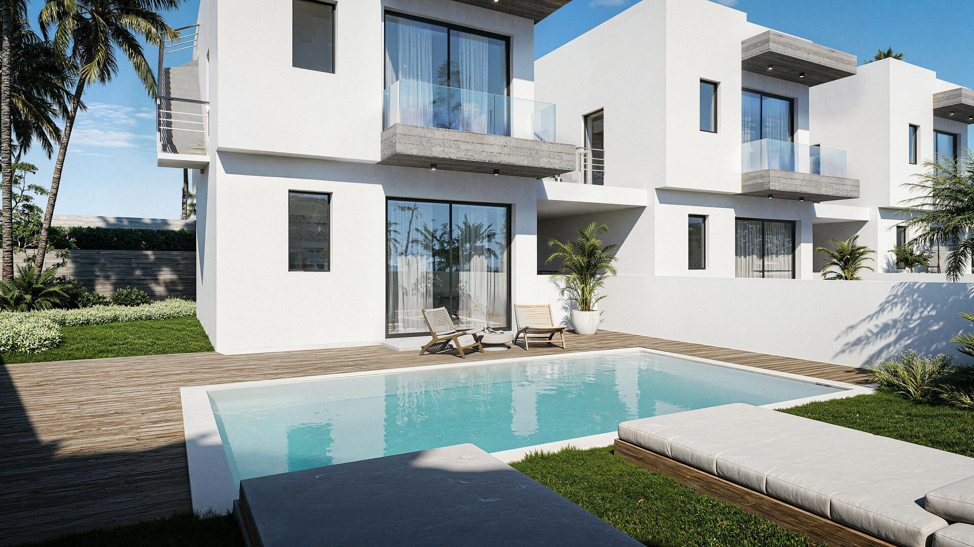 For sale a modern spacious double house in the area of Kissonerga, Paphos, just a few minutes walk from the sea. The house is located on a plot of 240 m2. The interior of the 100 m2 house turns into a cozy veranda. During the construction and decoration, only high-quality materials were used, which guarantees durability and impeccable appearance. There is a covered parking for the car. There is also a private swimming pool on site.