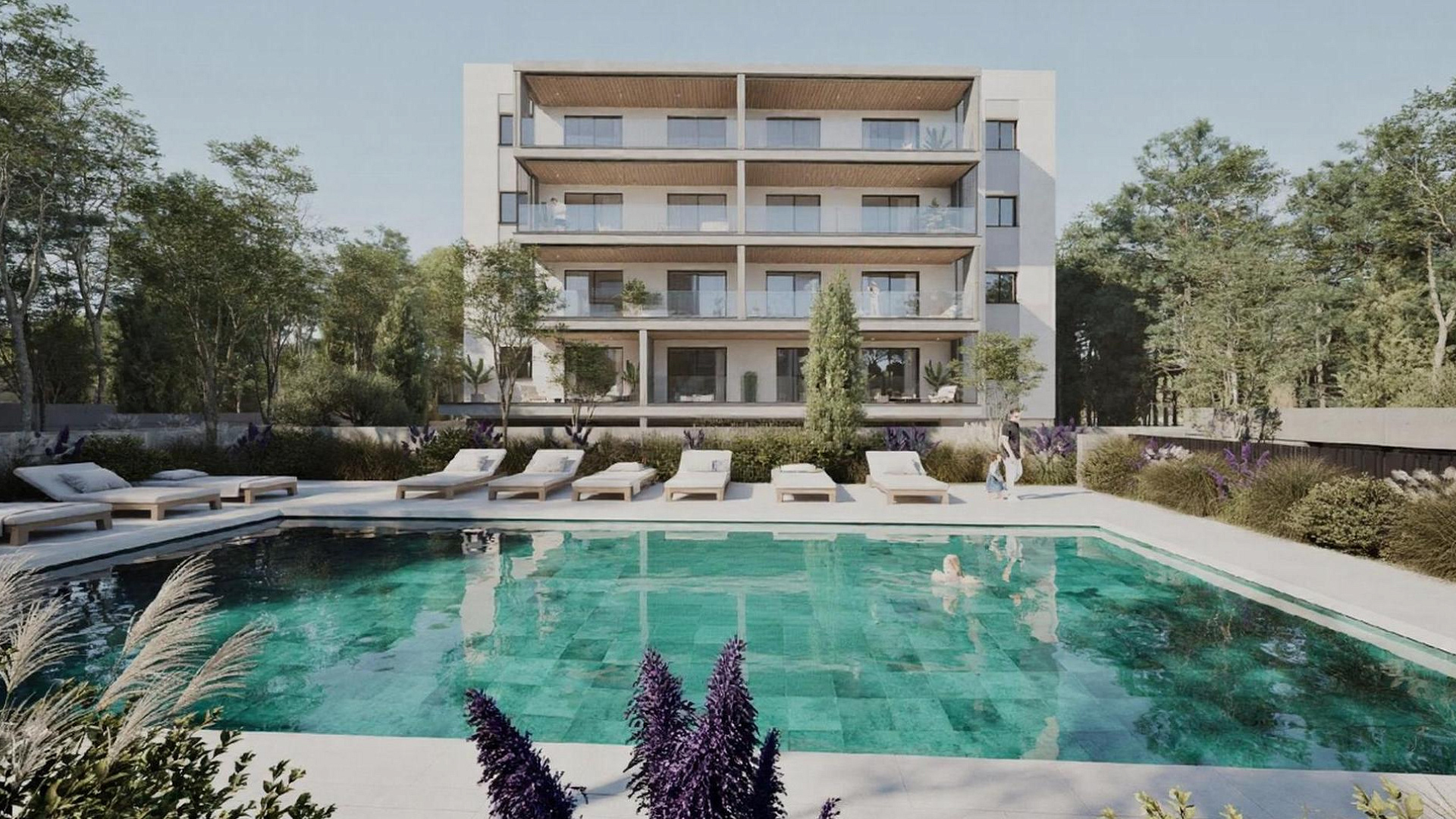 The apartment has a thoughtful layout with a spacious living room, an open kitchen and cozy bedrooms. The complex has a communal swimming pool, gym, covered parking and modern communal areas that create a comfortable atmosphere for living. The building was built using high-quality materials and modern technologies, including thermal insulation, double glazing, solar water heating system and preparation for air conditioning and underfloor heating, which ensures a high level of comfort and energy efficiency.