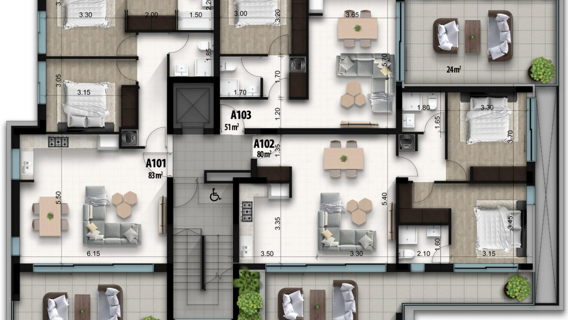 Modern apartment for sale in the area of Agios Nikolaos, Larnaca. The apartments are located in a new premium residential complex that combines modern architecture, high-quality construction and a convenient location near the city center. Modern technologies and high-quality materials are used in construction, providing a high level of comfort and energy efficiency of class A.