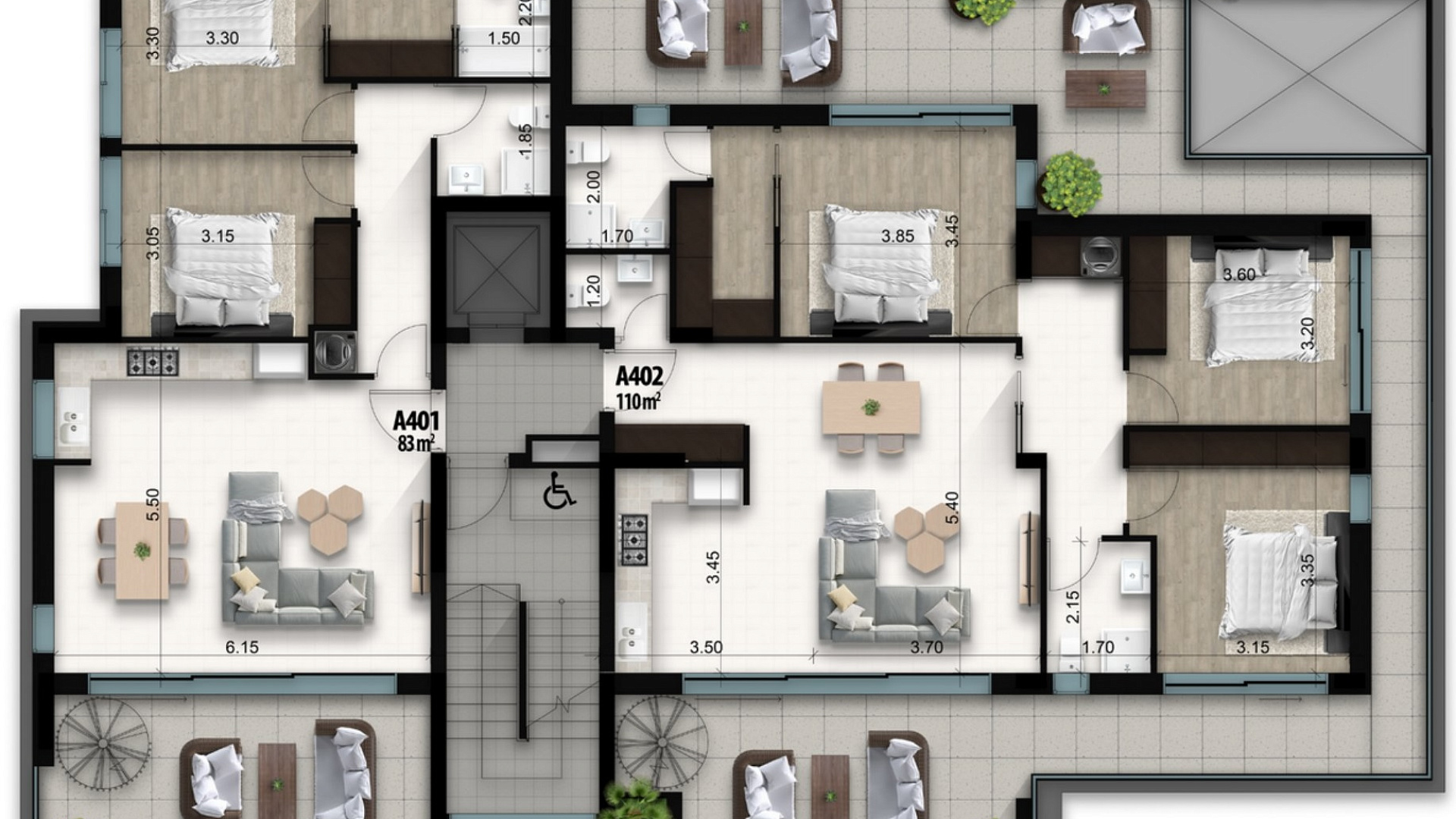 For sale a modern penthouse with a private roof terrace in the area of Agios Nikolaos, Larnaca. The apartments are located in a new premium residential complex that combines modern architecture, high-quality construction and a convenient location near the city center.