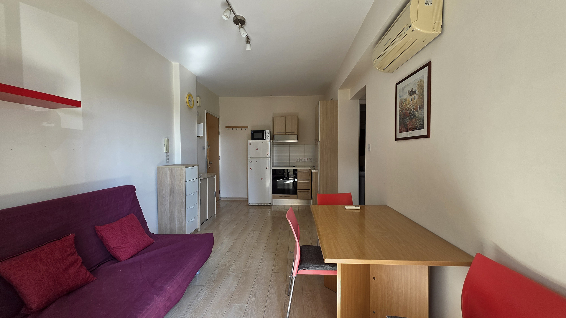 One bedroom apartment for sale in Limassol. The apartment includes 1 bedroom, 1 bathroom, kitchen and living room. The apartment is equipped with air conditioning. The apartment is located on the 1st floor. The residential facility is located in a four-storey building. The entire infrastructure is within walking distance. 100 meters from the sea
