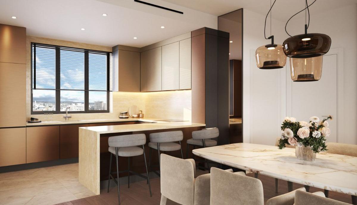The apartment is equipped with advanced systems to ensure maximum comfort at any time of the year. A underfloor heating water circuit has been installed, providing uniform and economical heating. A modern VRV multi-split air conditioning system with internal units sewn into the ceiling is installed for climate control. A photovoltaic system is installed for each apartment with a capacity of up to 2 kW. This allows you to significantly reduce energy costs, making housing eco-friendly and economical. The ceiling height is 3.15 meters.