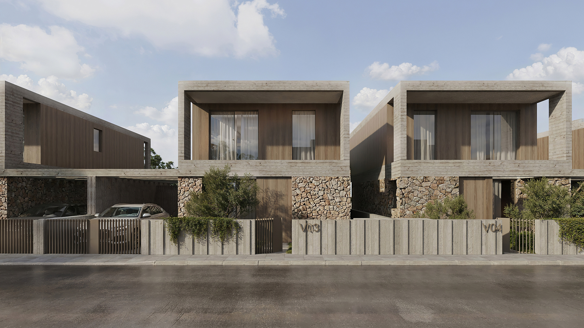 Villa for sale in Geroskipou area, Paphos. A modern complex of 15 luxury villas located in a tourist area just 200 meters from the beach. The project is designed for clients seeking a modern coastal lifestyle combining privacy, comfort and modern design within walking distance from the sea.