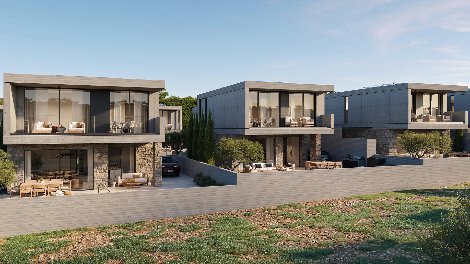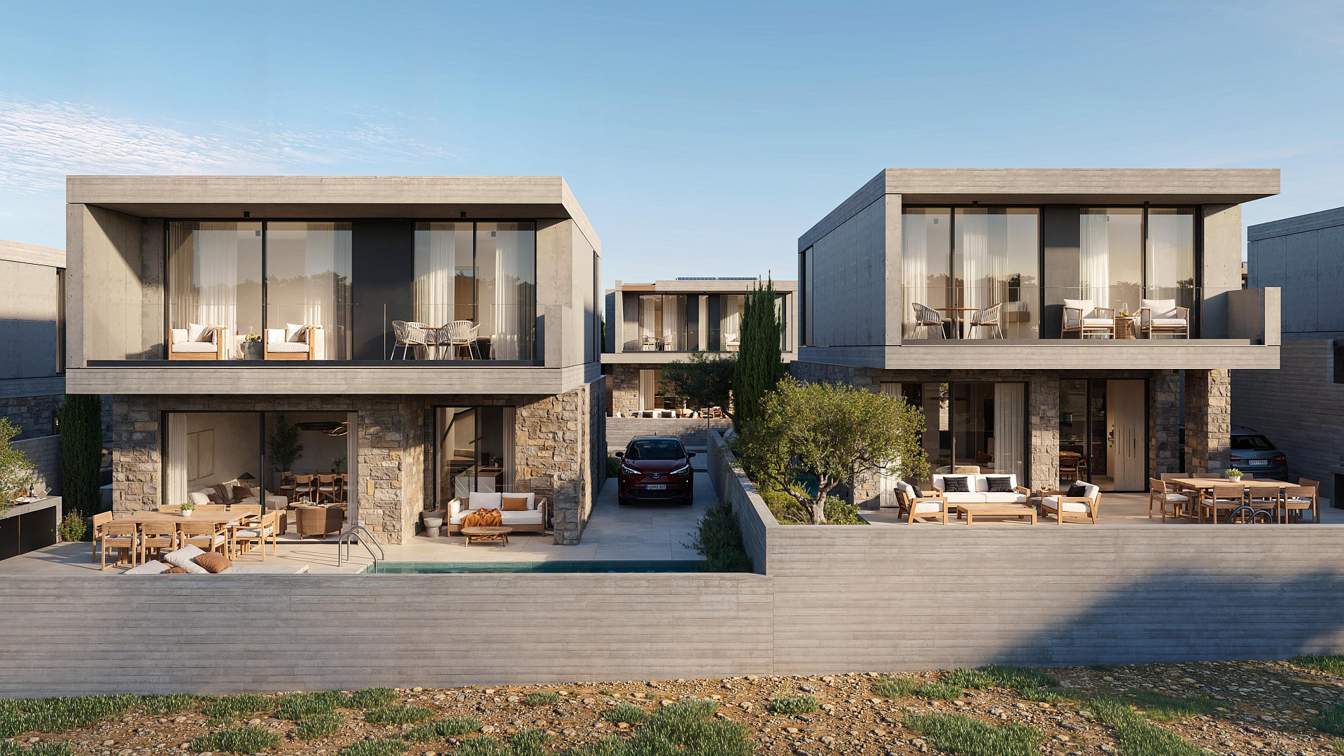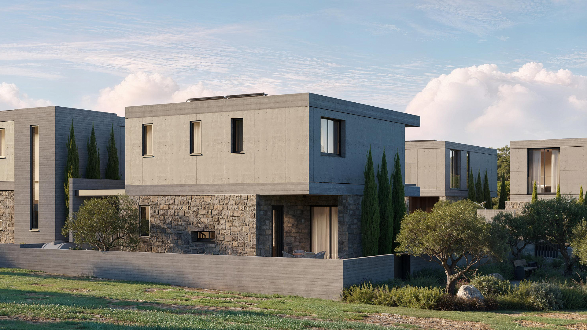 Villa for sale in a complex under construction in Geroskipou area, Paphos. Each house will have a swimming pool, barbecue area, air conditioning (split system), modern plumbing, covered parking. The complex will consist of 13 houses with private entrances.