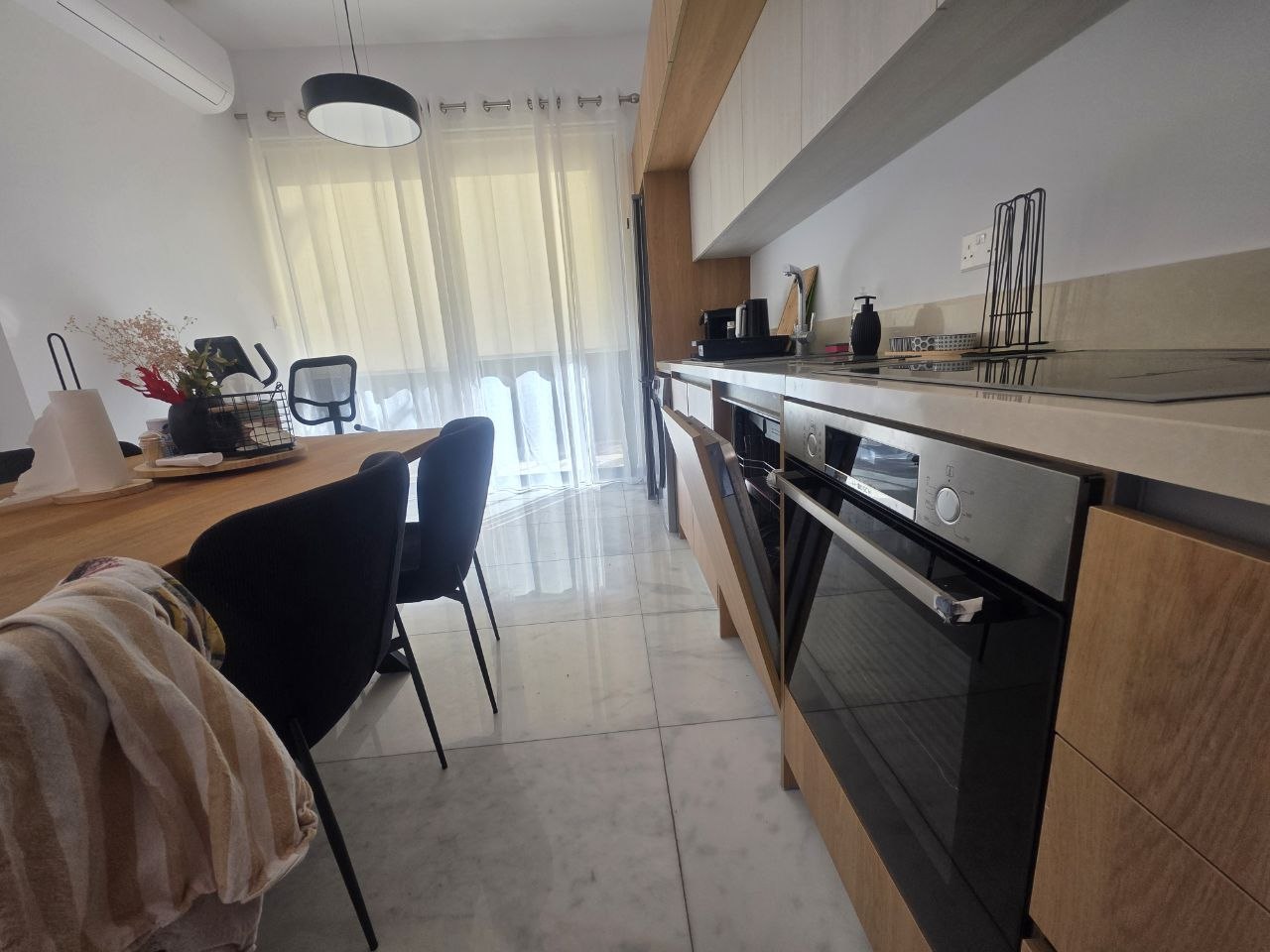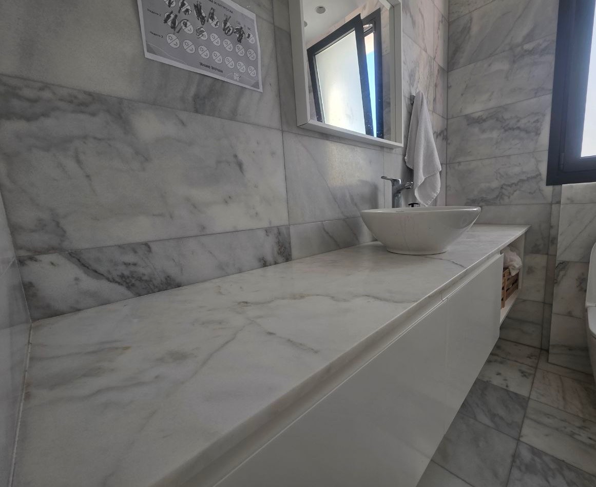 For sale a three-bedroom villa of 130 m2 in the area of Chloraka, Paphos. The villa includes 3 bedrooms, 2 bathrooms, 1 guest bathroom, a spacious open-plan kitchen, a living room, an additional sitting area/TV room, a study/office, and a dining area. The villa is fully furnished and equipped with household appliances: induction hob, oven, microwave, dishwasher, washing machine, refrigerator, air conditioners in all rooms, underfloor heating, high-speed Internet on two floors, water filtration system, solar panels, built-in storage systems, 65” TV, electric recliner-sofa, solid oak dining table for 8 people. The residence has a private landscaped plot with a fenced pool, outdoor shower and BBQ/relaxation area. The area is surrounded by greenery, including lemon trees, rosemary and passion fruit. The property is ready to move in and is suitable both for permanent residence and as a high-end investment. The property is located in a quiet residential area, just a 6-minute drive from Kings Avenue Mall and close to all necessary infrastructure.