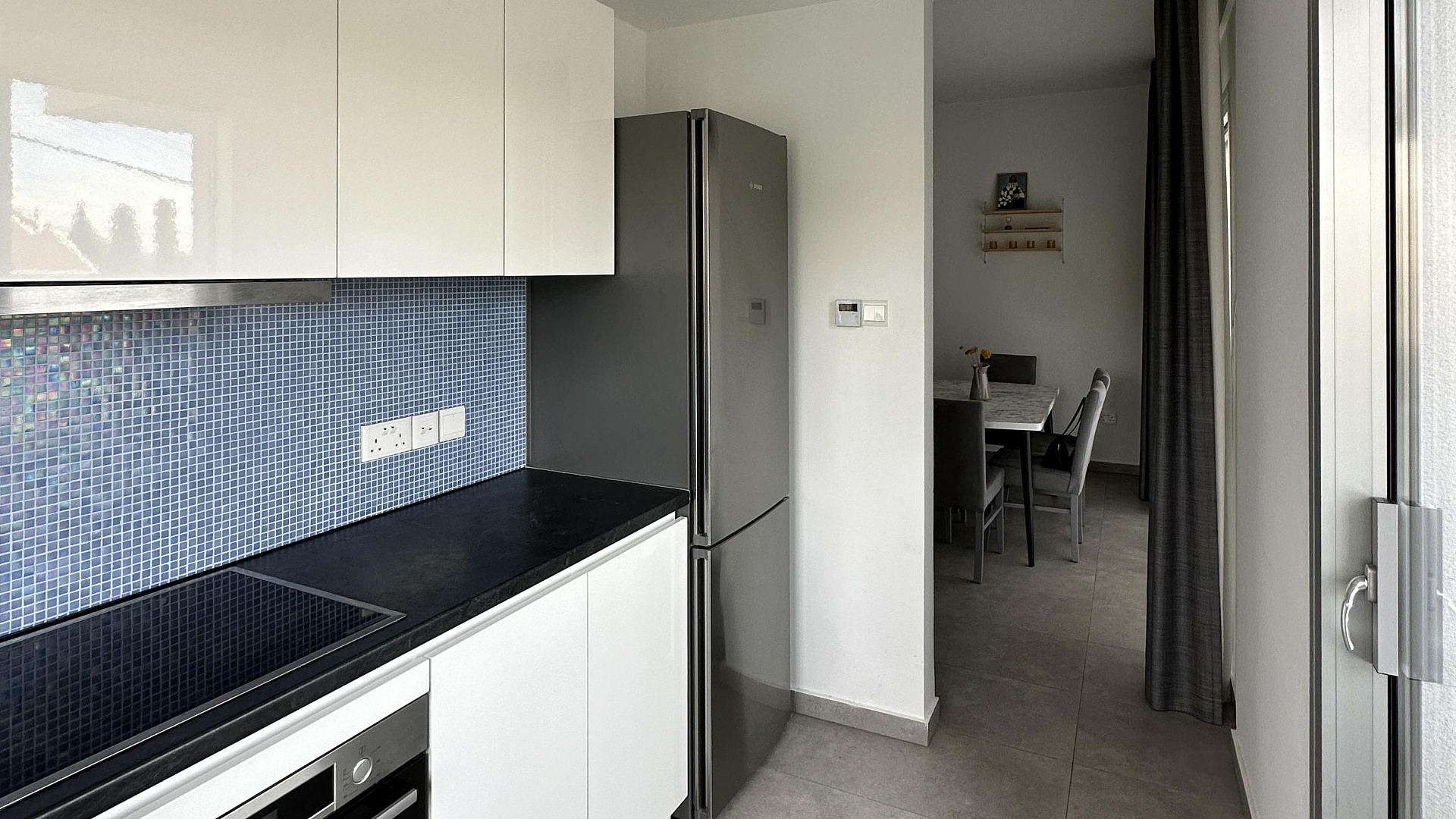 A two-bedroom apartment in the Potamos Germasogeias area of Limassol is for sale. The apartment includes two bedrooms, two bathrooms, a kitchen, a living room, a large covered veranda, a storage room and a covered parking space. The property is fully furnished and equipped with appliances, air conditioning in all rooms and underfloor heating. The residence is located in a gated complex with a swimming pool and a children's playground. The building was completed in 2020 and has energy efficiency A. It is 1000 meters from the sea, Papas supermarket and Dasoudi Park.