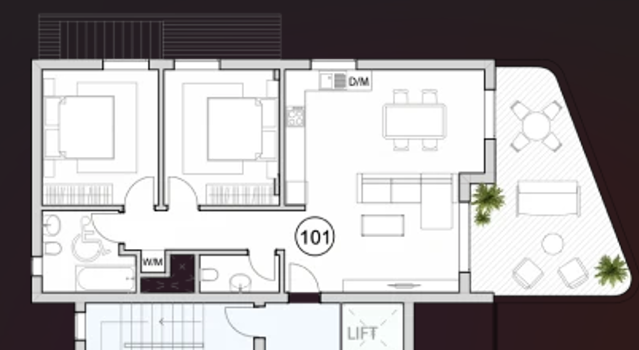 Sale of 2 bedrooms apartment in Agios Athanasios, Limassol. The apartment consists of open plan kitchen/living area, 2 bedrooms, 1 bathroom and guest toilet. The apartment has large balcony, covered parking and storage, electric gates.