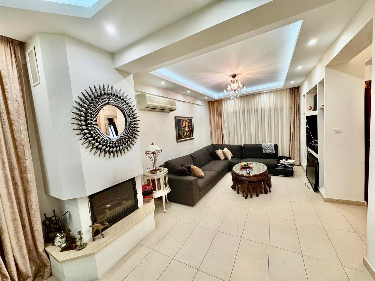 Furnished 3-bedroom house for rent in Kolossi, in a quiet area. The house is fully ready to move in. The house has 2 kitchens, 3 bathrooms, fireplace, video surveillance system, security system, covered parking for 3 cars and an efficient gas water heating system. The house is located in a quiet location, while all the necessary infrastructure is within walking distance: a supermarket, a pharmacy and a children's park. Kourion Beach is only 5-7 minutes away.