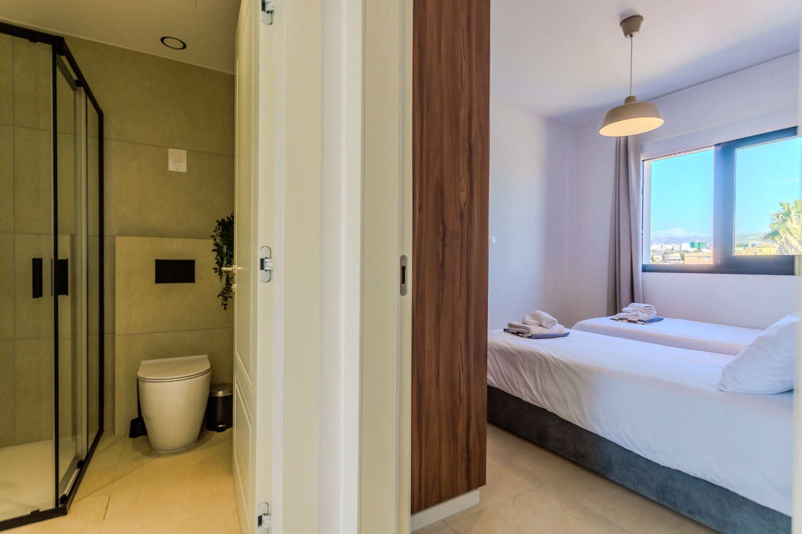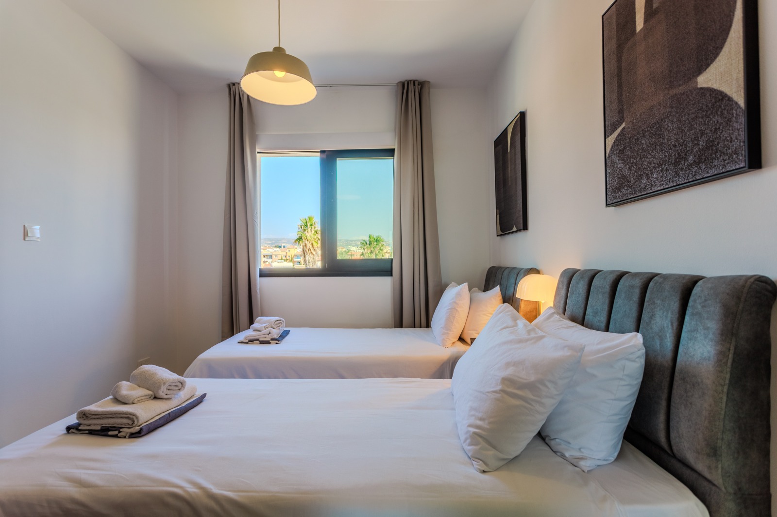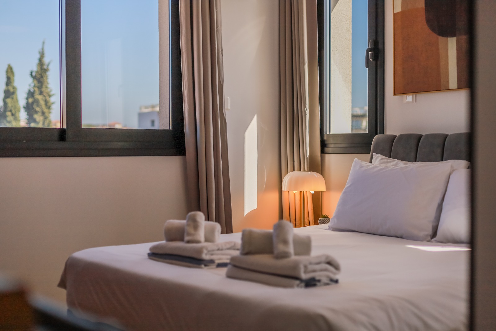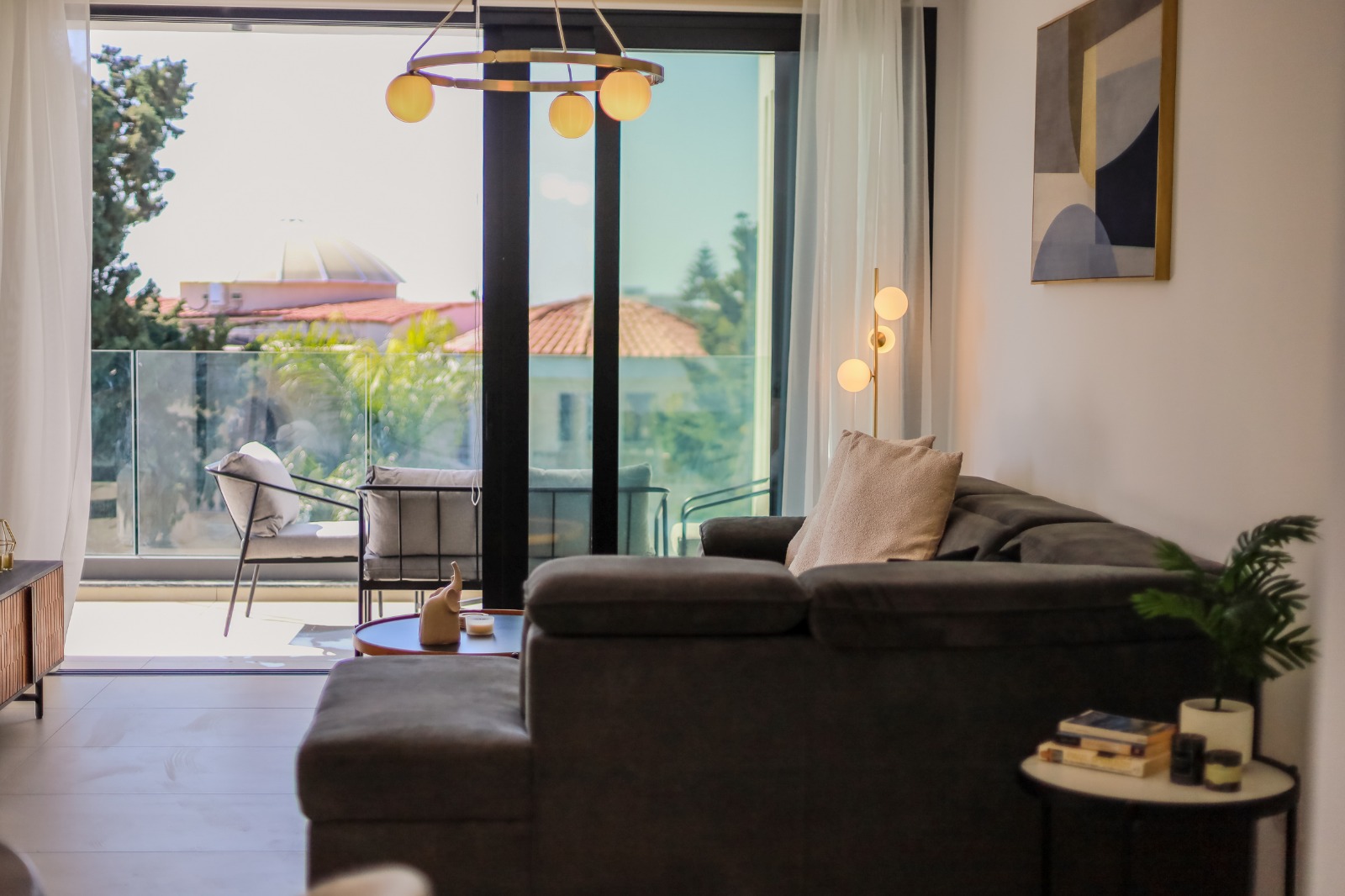 For sale a two-bedroom penthouse with an area of 150 m2 in the Town Center area, Paphos. The penthouse includes 2 bedrooms, a kitchen, a living room, 2 bathrooms, a spacious veranda of 27 m2, a roof garden of 37 m2, as well as a storage room and a parking space. The residence is sold furnished. The property is located in the central part of Paphos, providing convenient access to the urban infrastructure. The property is ready to move in and has a spacious layout, plenty of natural light and a high degree of privacy.