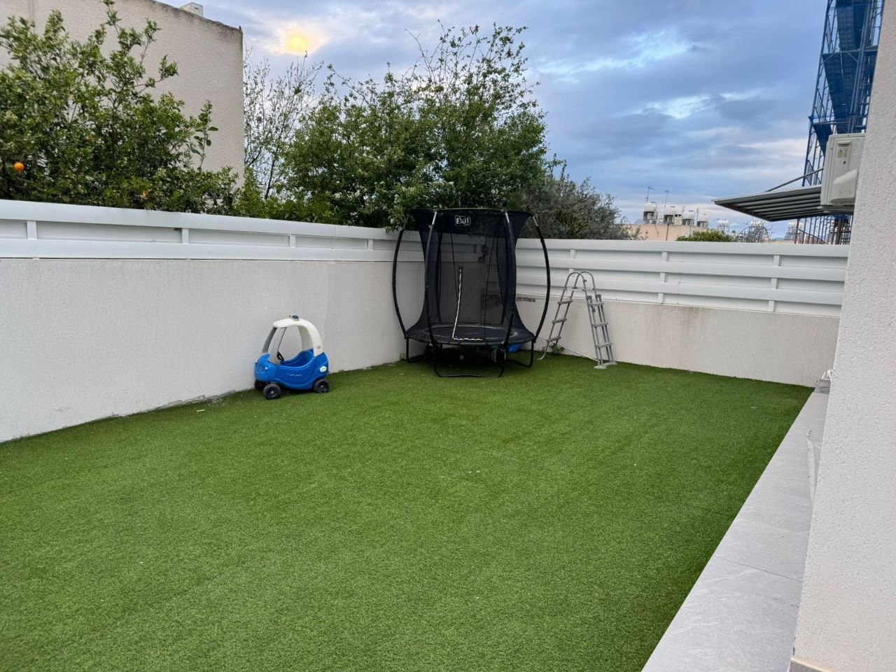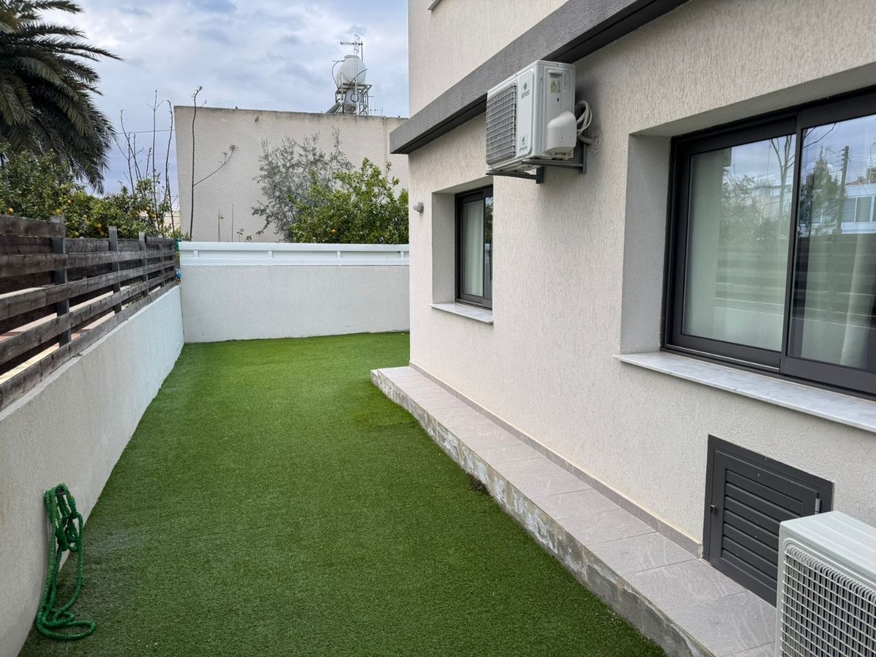 For sale a three-bedroom apartment of 100 m2 on the ground floor in Lakatameia, Nicosia. The apartment includes 3 bedrooms, bathrooms, a kitchen, a living room and a garden of 40 m2. The facility is in excellent condition after construction in 2021 and is equipped with new air conditioners and all necessary household appliances. The property is located in a quiet cul-de-sac next to a green area, while all necessary infrastructure, including schools, shops, supermarkets, cafes and pharmacies, is within walking distance.