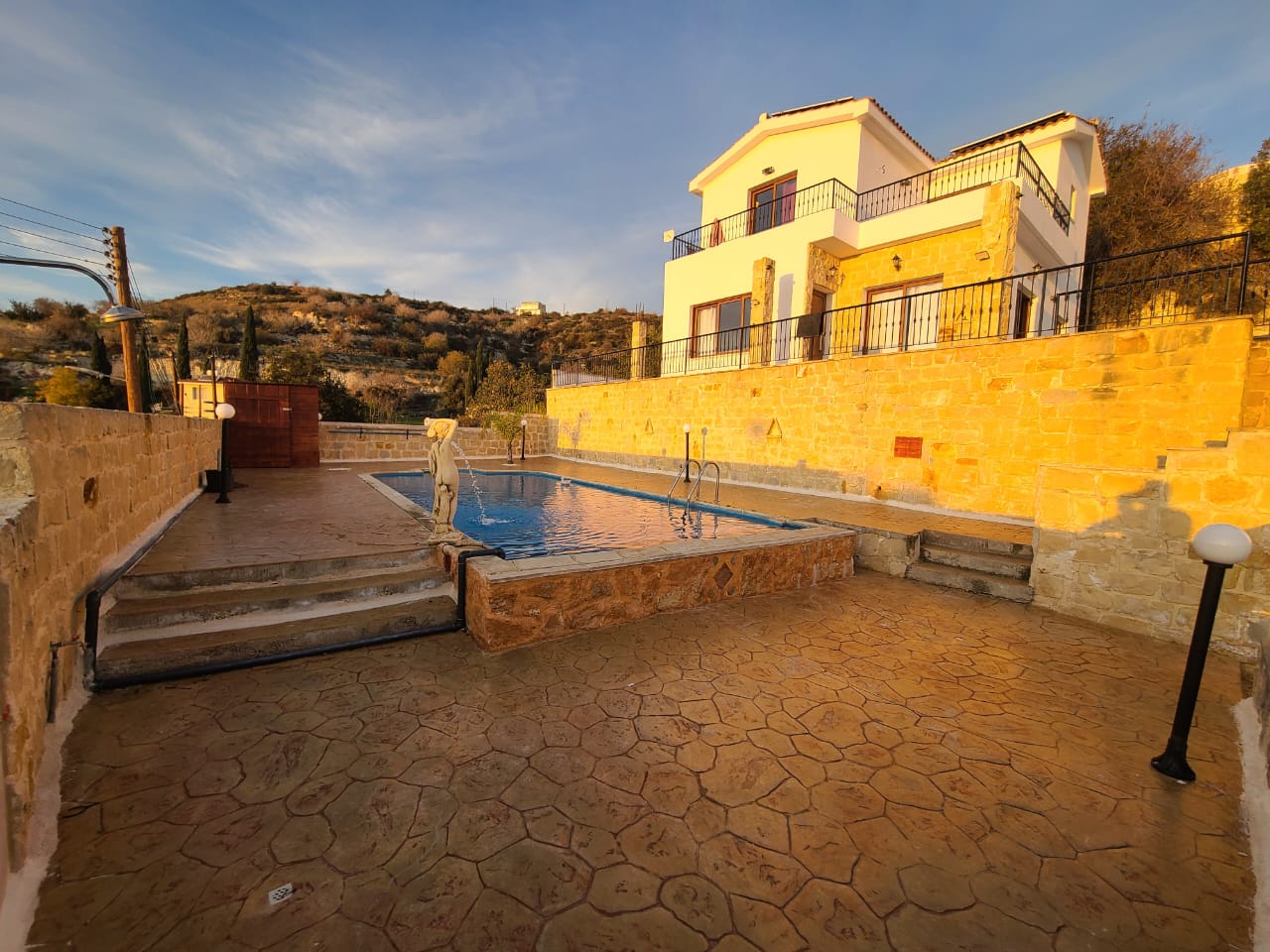 For sale a four-bedroom villa of 200 m2 on a plot of 679 m2 in the area of Tsada, Paphos. The villa includes 4 spacious bedrooms, 4 bathrooms and washrooms, a kitchen, a living room with a fireplace, large verandas, balconies and a storage room. The residence is unfurnished, equipped with an air conditioning system in all rooms, a heating system, a fireplace, an elevator, a 7 kW photovoltaic system, and also has a private swimming pool and a BBQ area. The property is located just 5 minutes from the International School and has an open view of the sea and mountains. The property has a closed garage for 2 cars and is not subject to VAT.