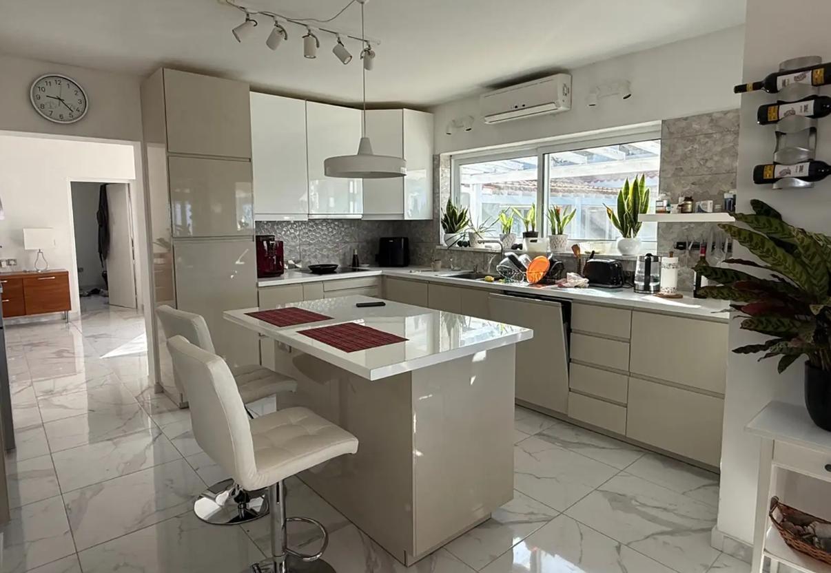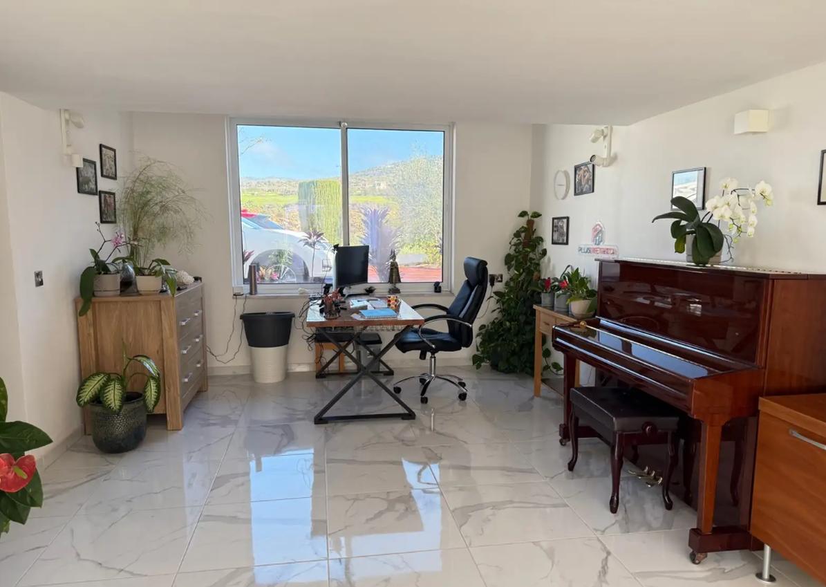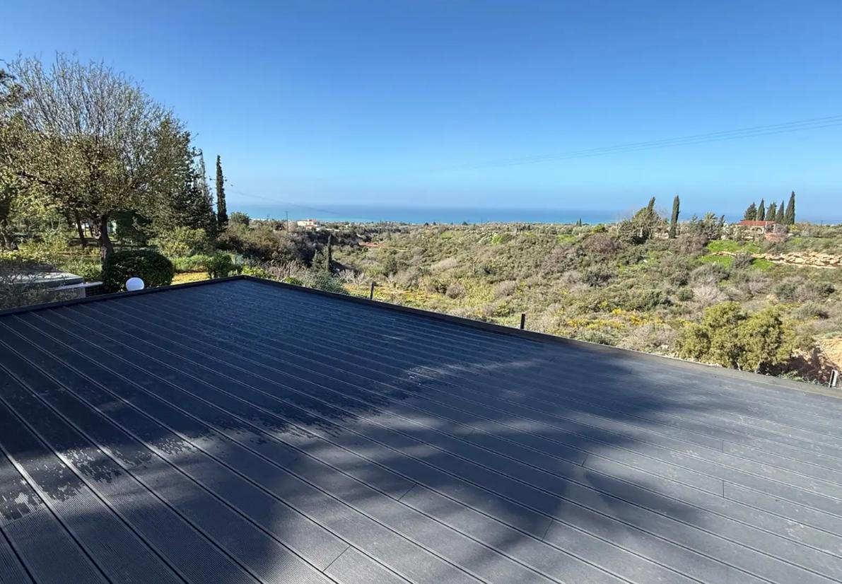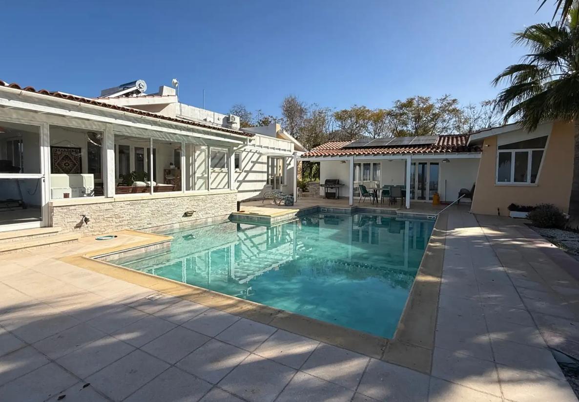 Three-bedroom villa for sale in Tala area, Paphos city, with an area of 349 m2, a plot area of 1394 m2. The house is unfurnished, with air conditioning in all rooms. The villa includes 3 bedrooms and 4 bathrooms, fireplace, balconies, attic, storage room and alarm system. The facility consists of two buildings, which provides additional privacy and functionality: some of the bedrooms are located in a separate building. The house provides for the possibility of organizing an additional room on the attic level (bedroom or study). There is a private swimming pool with salt water system and automatic control, a garden with mature fruit trees and palm trees, as well as a greenhouse. There is a covered parking for 2 cars and an additional parking space for several more cars. Underfloor heating with a heat pump and an 8 kW solar system are installed. The house is located in an area with complete privacy and no neighbors in the immediate vicinity, with panoramic sea views.
