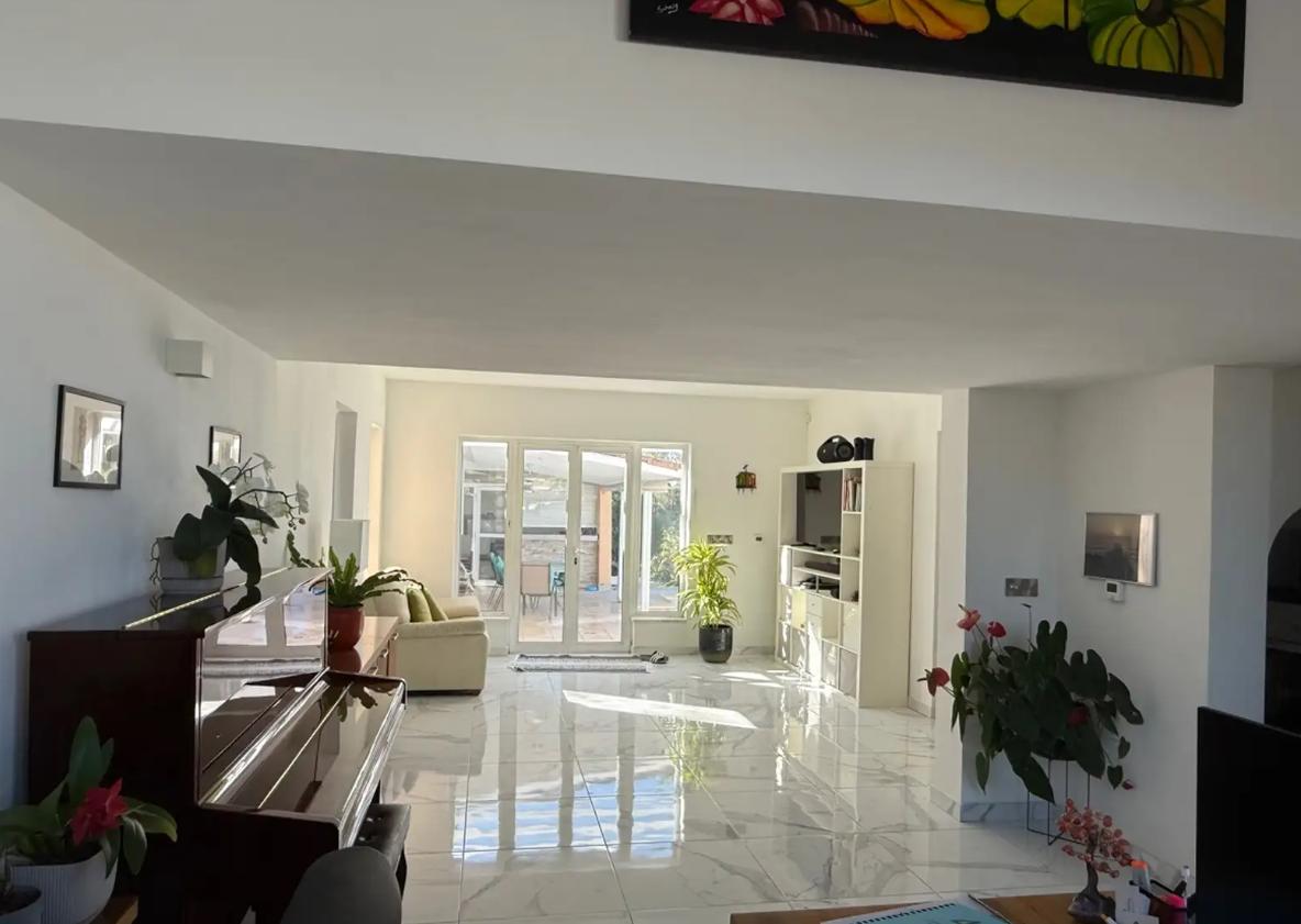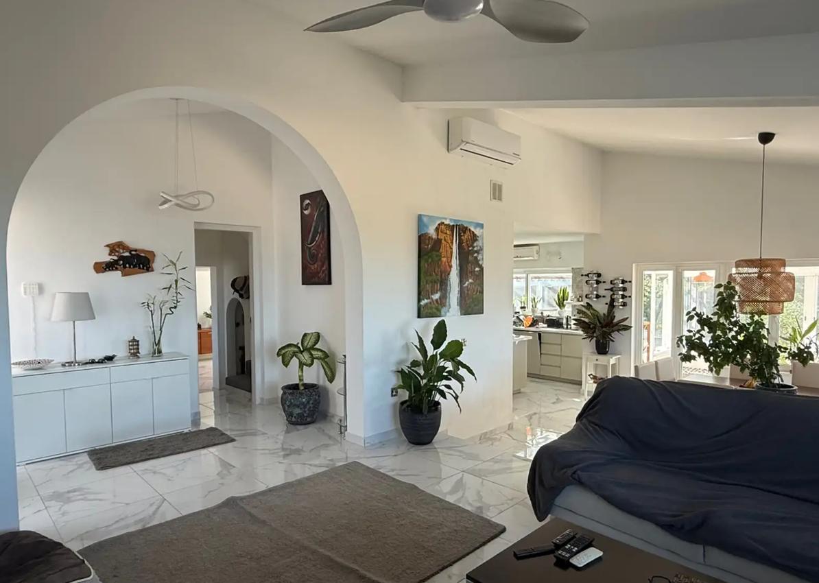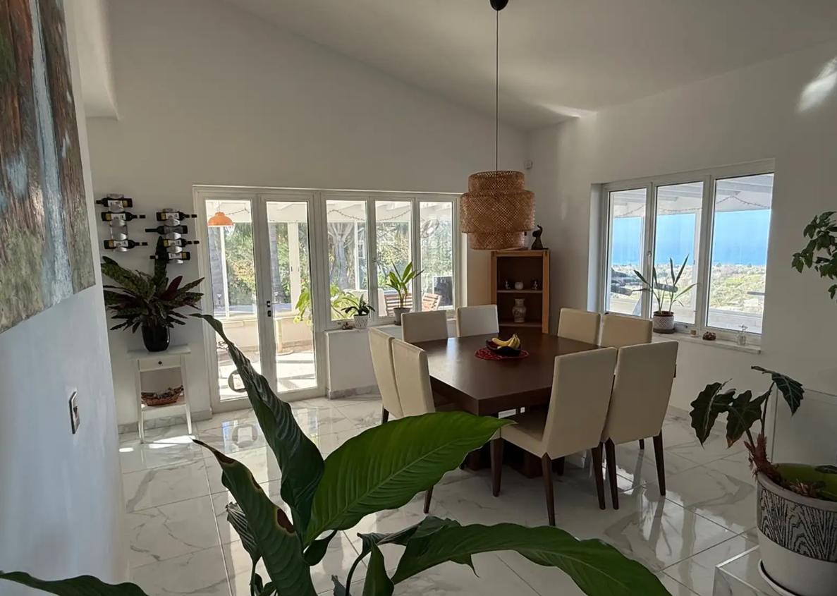 Three-bedroom villa for sale in Tala area, Paphos city, with an area of 349 m2, a plot area of 1394 m2. The house is unfurnished, with air conditioning in all rooms. The villa includes 3 bedrooms and 4 bathrooms, fireplace, balconies, attic, storage room and alarm system. The facility consists of two buildings, which provides additional privacy and functionality: some of the bedrooms are located in a separate building. The house provides for the possibility of organizing an additional room on the attic level (bedroom or study). There is a private swimming pool with salt water system and automatic control, a garden with mature fruit trees and palm trees, as well as a greenhouse. There is a covered parking for 2 cars and an additional parking space for several more cars. Underfloor heating with a heat pump and an 8 kW solar system are installed. The house is located in an area with complete privacy and no neighbors in the immediate vicinity, with panoramic sea views.