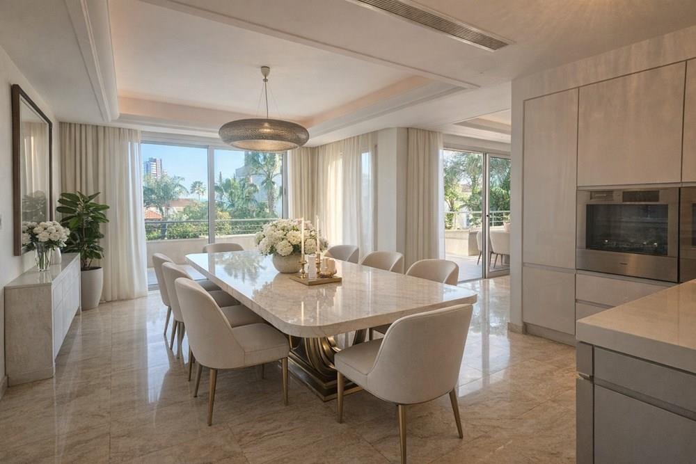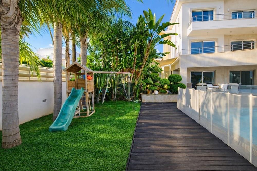 Four-bedroom villa of 415 m2 for sale on a plot of 850 m2 in the area of Agios Tychonas, Limassol. The villa includes 4 bedrooms, 5 bathrooms, a kitchen, an additional kitchen, a spacious living room, a staff room, balconies and parking for 5 cars. The residence is equipped with VRV air conditioning, underfloor heating throughout the house, a built-in kitchen with modern appliances, a Jacuzzi, as well as electric shutters on the windows. The property is located in a prestigious and quiet area with panoramic sea views, providing a high level of privacy while remaining conveniently close to urban infrastructure. The property has a private swimming pool of 65 m2 and a landscaped garden, the villa was built in 2010 and is in excellent condition, there is a Title Deed, which guarantees a safe and fast transaction.