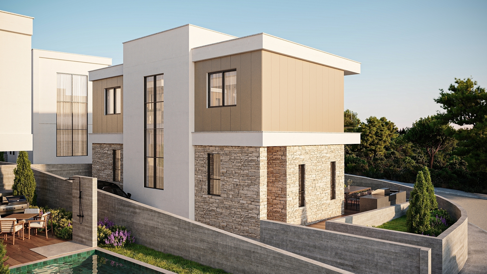 A modern house for sale in Konia, Paphos is a great option for a comfortable stay or a profitable investment. The facility is located in a prestigious location with convenient access to all necessary infrastructure. The house is equipped with underfloor heating, VRF air conditioning system and complies with energy efficiency class A, which ensures maximum comfort and energy savings throughout the year. Due to its convenient location, it provides quick access to the motorway, Paphos International Airport, beaches, schools and local amenities, making this property an ideal choice for both living and investment.