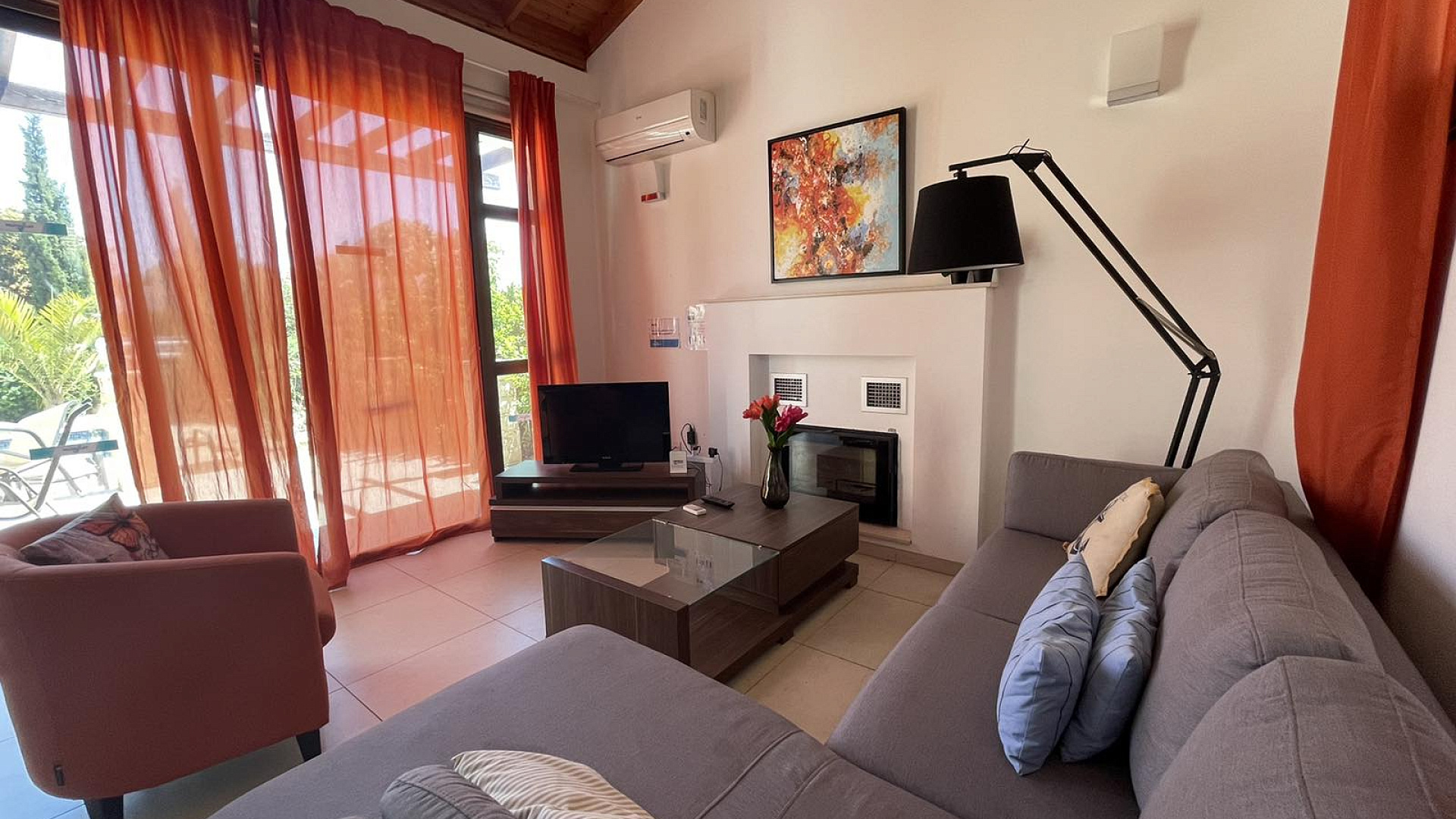 For sale a two-bedroom villa of 81 m2 on a plot of 466 m2 in the area of Ayia Thekla, Famagusta. The villa includes 2 bedrooms, 2 bathrooms, a kitchen combined with an open-plan living room, as well as an outdoor patio. The villa is equipped with air conditioning, fireplace, double glazing, solar panels, and a BBQ area. The property is located in a coastal area providing a peaceful lifestyle by the sea. The property has a private swimming pool, garden and parking space, as well as a modern design and a cozy atmosphere.