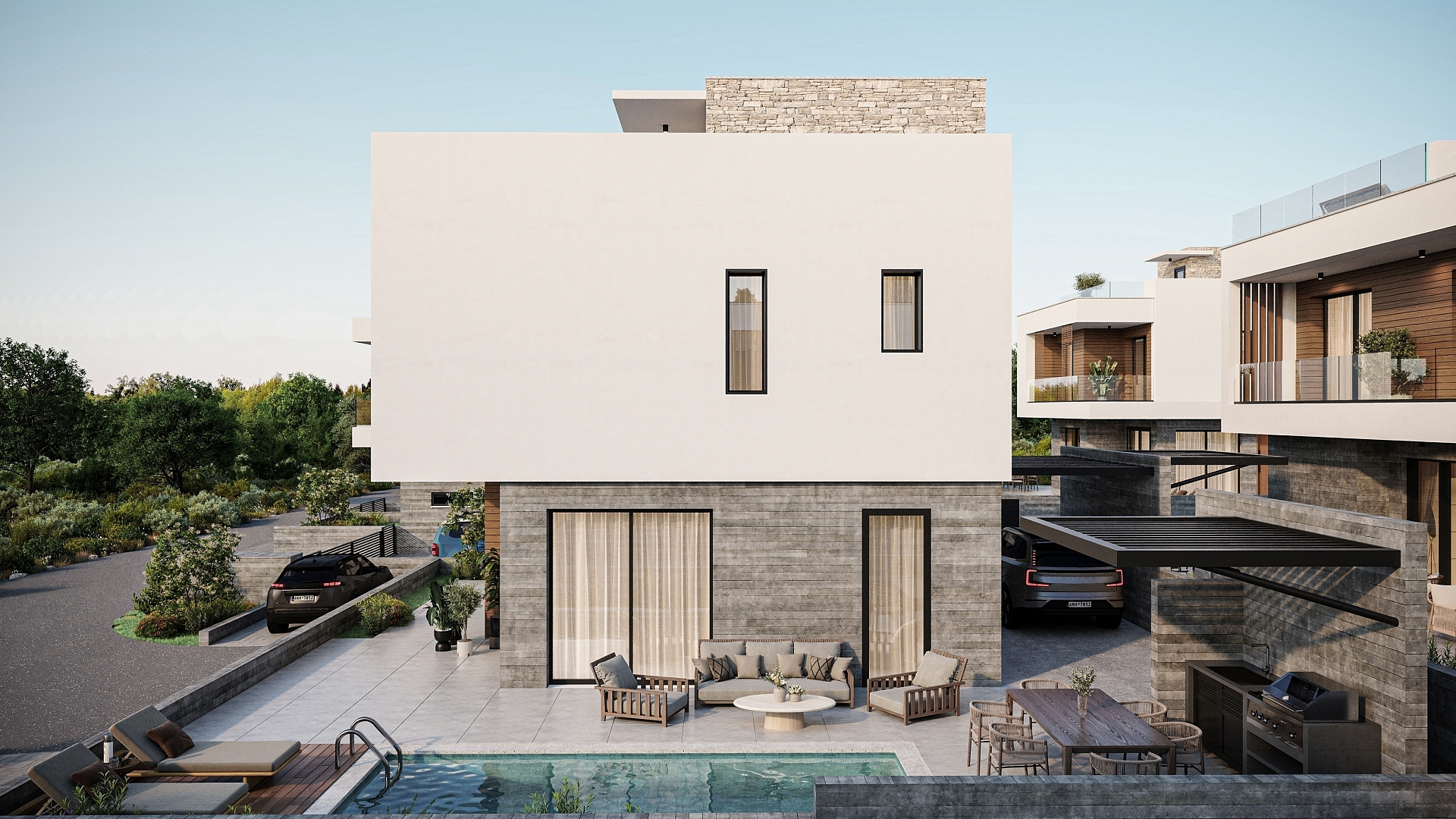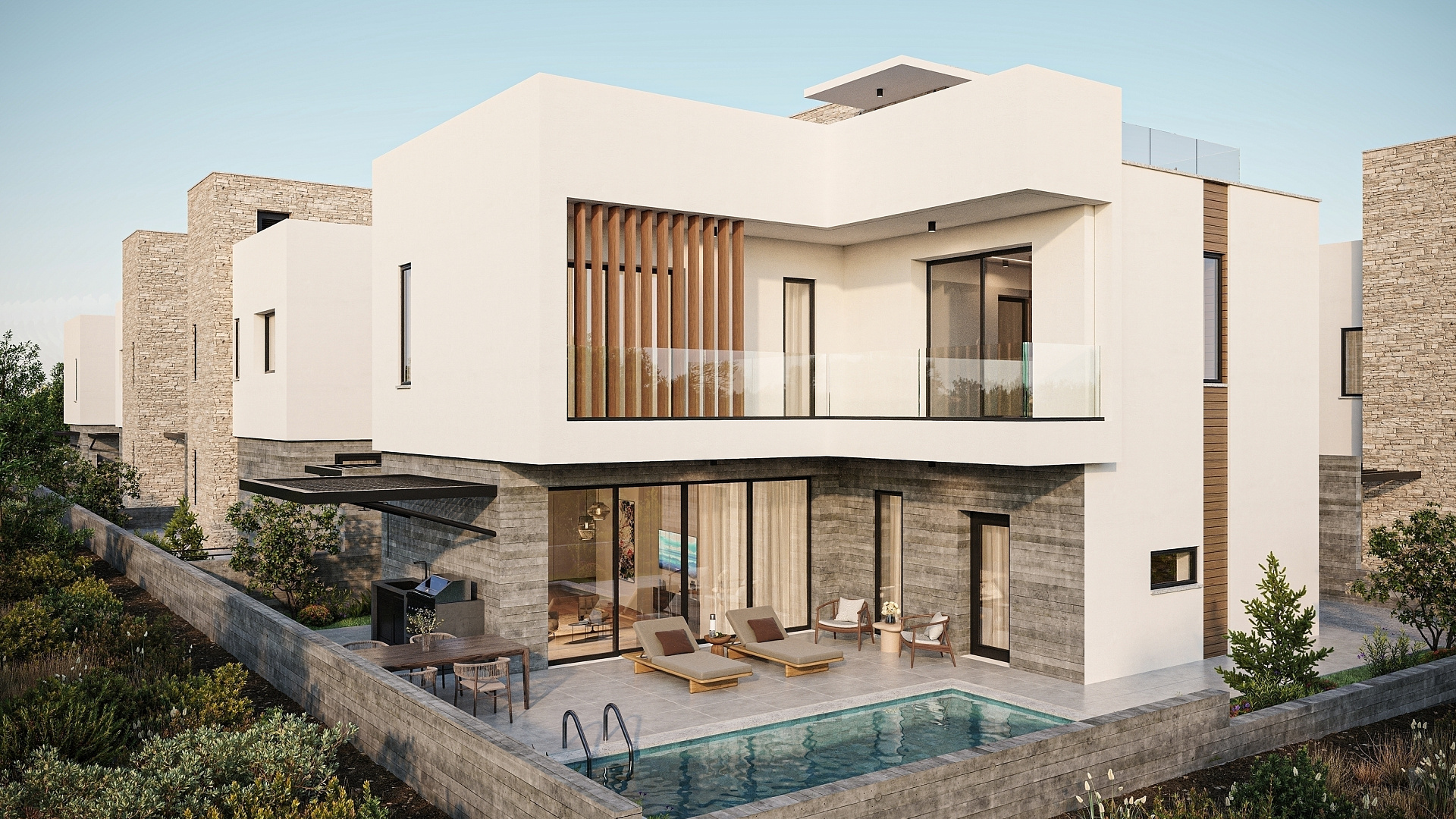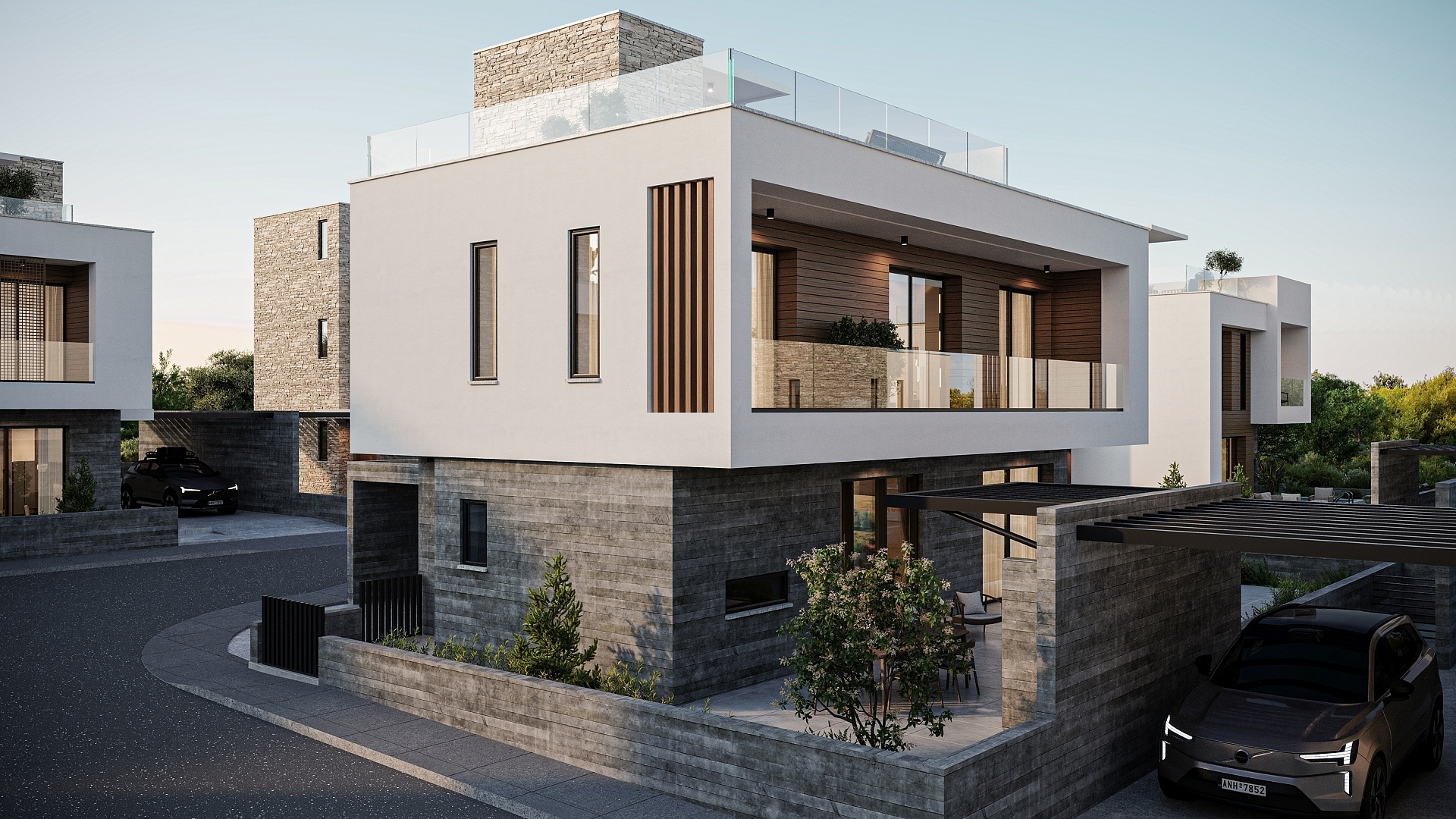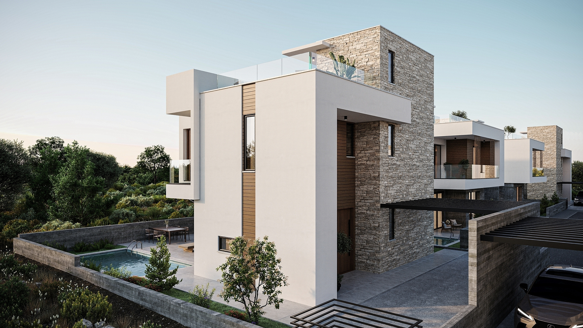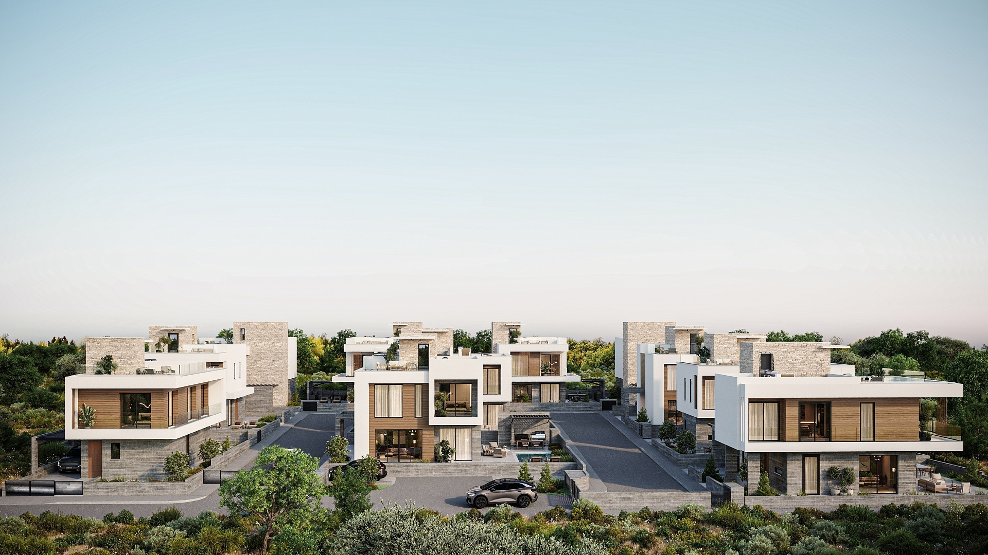 The project includes 3 and 4 bedroom villas, designed with an emphasis on comfort and modern style. Each house is equipped with a private roof garden, ideal for relaxing and enjoying the views.