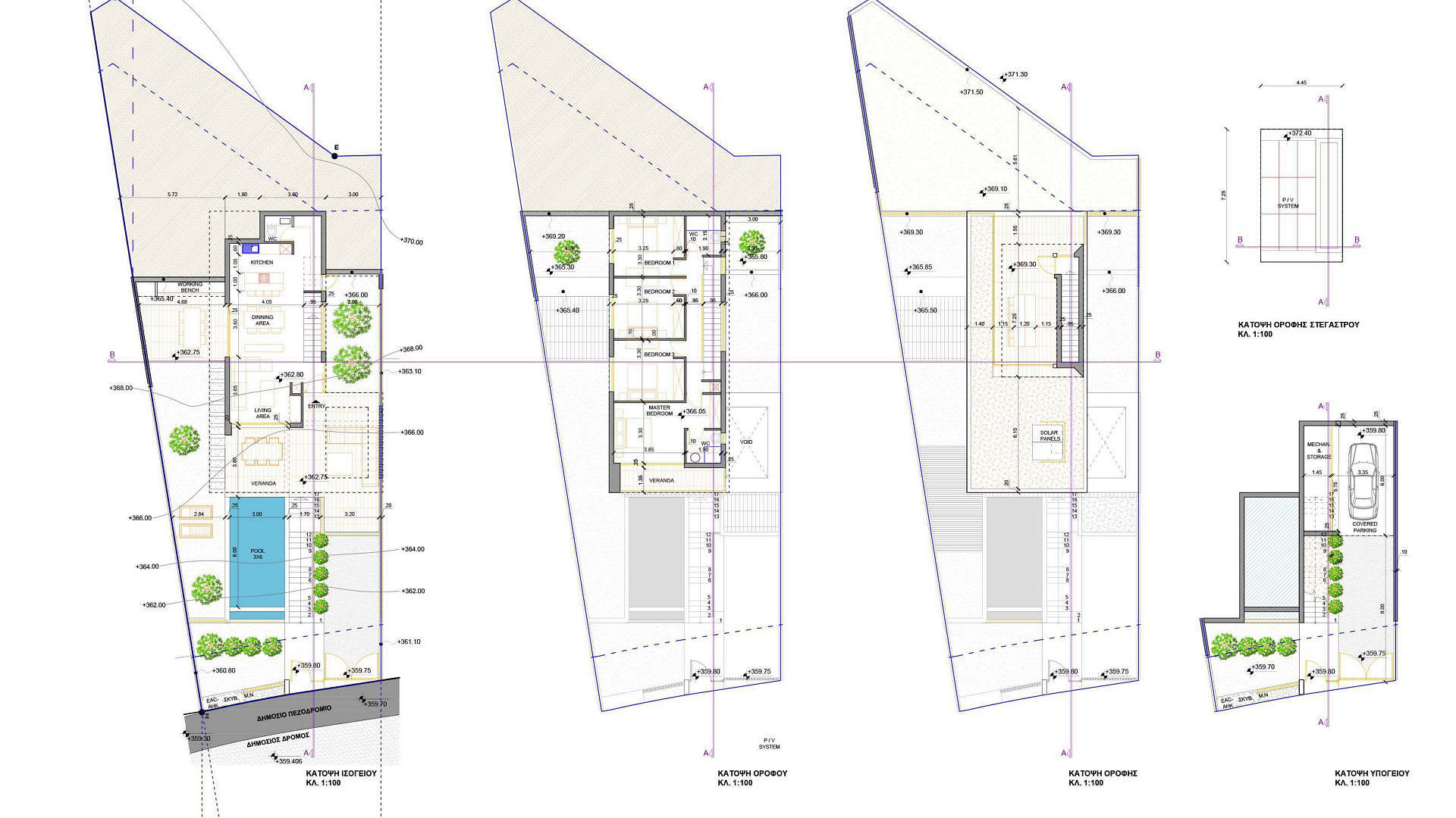 Modern villa for sale in Fasoula, Limassol. Each villa is designed in a modern architectural style and has a thoughtful layout that creates a spacious and functional living space. The construction uses high-quality materials and modern finishing solutions, including granite-style ceramic tiles in all rooms. The villa is equipped with a private pool, a spacious roof terrace and a barbecue area, which are already included in the price and are ideal for relaxing and entertaining guests. For maximum comfort, preparation for underfloor heating, installation of a photovoltaic system and air conditioning are provided.