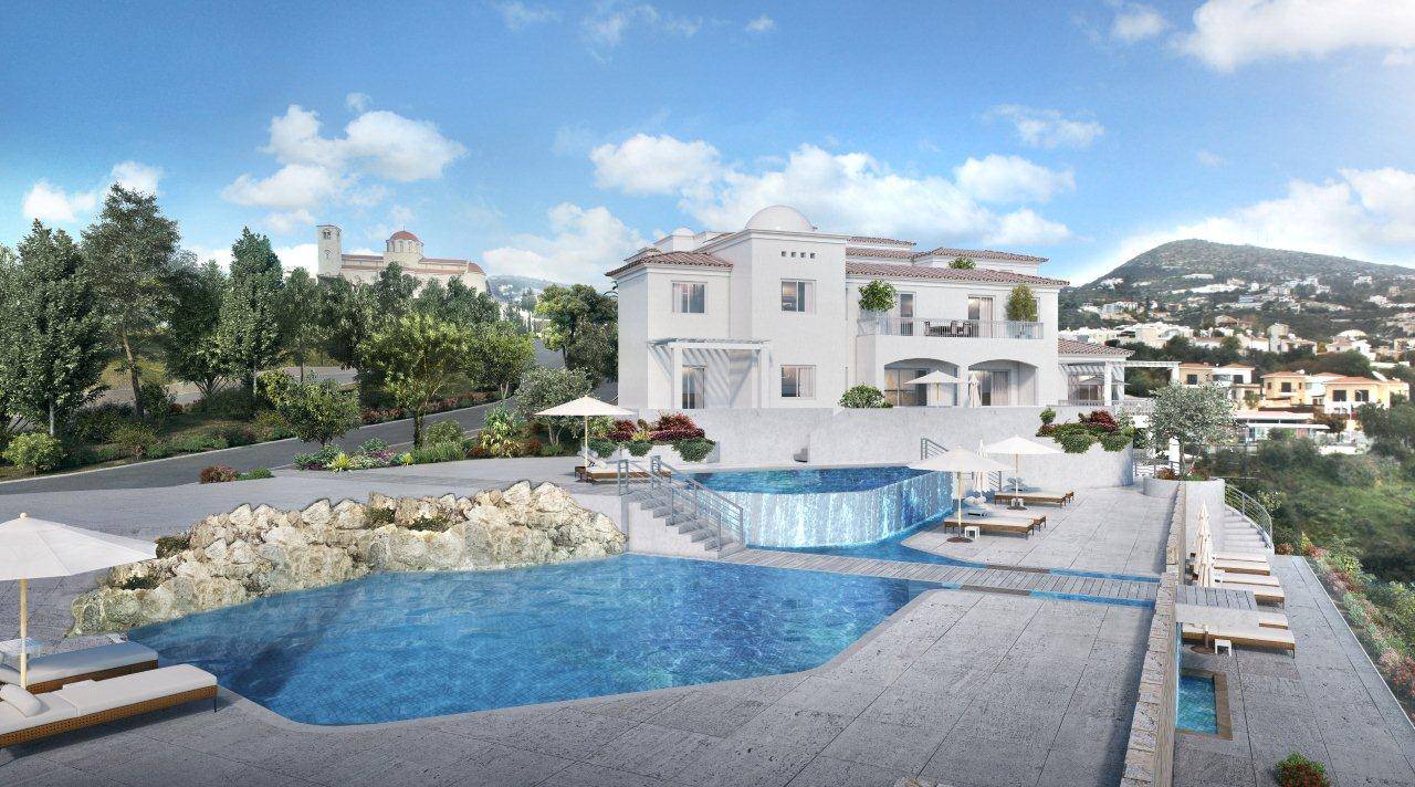 For sale 2 bedroom apartment in a new residential complex of Paphos, Tala area. The complex is located on a hillside, offering stunning views of the mountains and the Mediterranean sea. The architect used the smooth slope of the site, to ensure perfect views from all apartments. Large pool and terrace with views of the landscaped gardens create a fabulous Mediterranean ambience, ideal for relaxation. Sloping roofs give the complex a Mediterranean flavour and distinguish it from other modern systems.