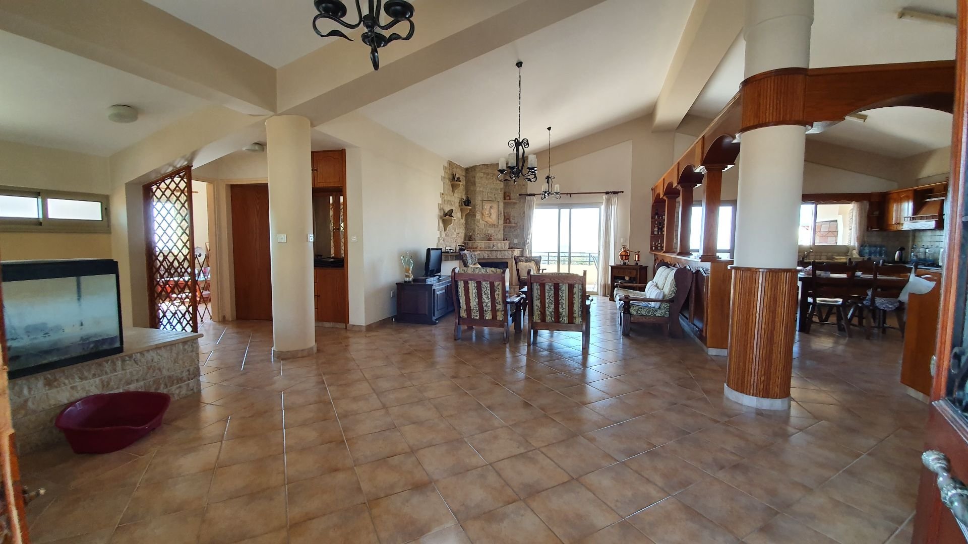 For sale a perfectly constructed spacious 4 bedroom villa with amazing unobstructed sea view in Paphos, area of Emba. On the ground floor you will find a very larde living room with a fireplace and a kitchen. Kitchen had been made from the solid oak wood. Beside the living room on the ground floor you can see a cabinet which one can be easily converted to the bedroom and a bathroom. From the living room you can walk in a spacious covered veranda with oven and extremely amazing unobstructed sea view. On the floor below you will see a 3 bedrooms with 2 bathrooms, a storage room and a very large space which one can be converted into a gym/playground/cinema room etc. Only about 5 minutes drive from the Paphos center.