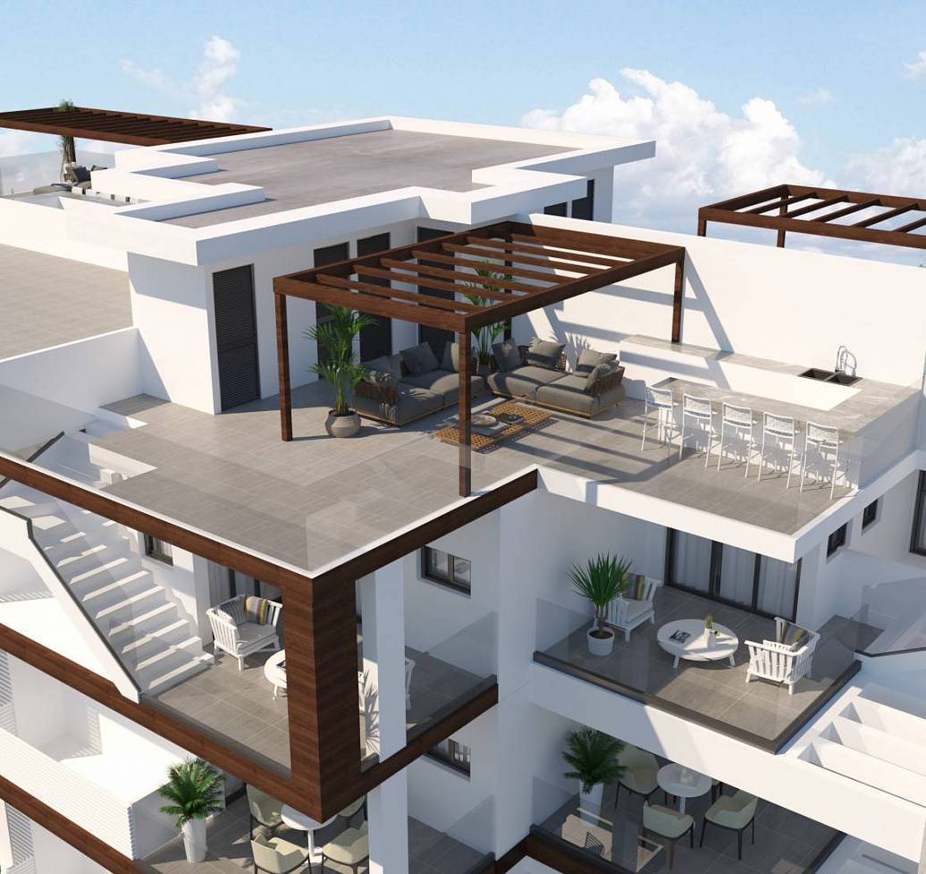 The project boasts 15 two-three bedroom - two bathroom apartments- all with spacious and contemporary living areas. There are three apartments per store – ensuring optimum privacy for potential buyers. The three fifth-floor apartments benefit from individual private and luxury roof gardens with amazing views of the Neighbourhood. Each apartment has one parking bay and a storage room on the ground level. The project is very near to supermarkets, private schools such as the American Academy and with immediate access to highways to Nicosia, Limassol, Paphos, and Famagusta.