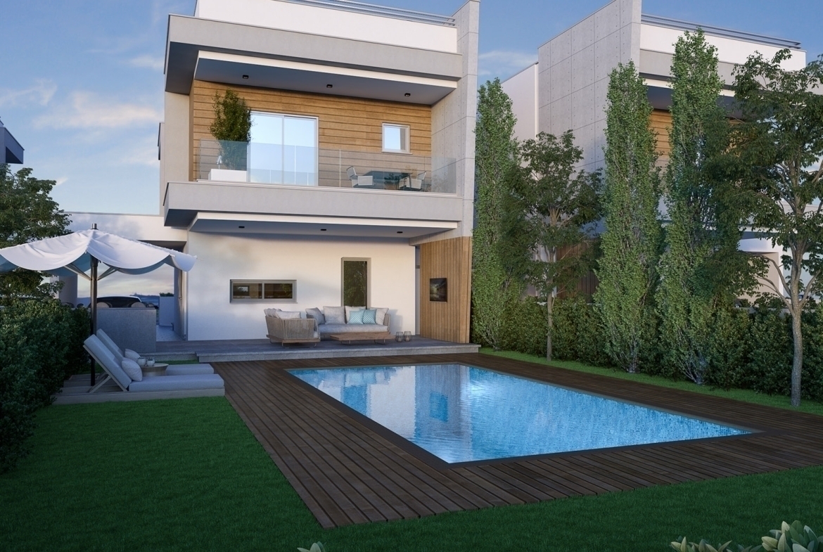For sale a 3 bedrooms detached house in Parekklisia village. The project is only 5 minutes’ drive to the beautiful beaches of Parekklisia Tourist area. Within the immediate area there are amenities including taverns, bakeries, supermarkets and pharmacies stores. The location enjoys easy accessibility to the Limassol-Nicosia motorway. The house has a total area of 152 m2 and comprises of an open plan living room, and kitchen area at the ground floor, and four bedrooms (one of which is en-suite with a walk in closet) and a shower room at the first floor. The house enjoys the use of a large yard (plot 400 m2) with private swimming pool. The villa has one covered parking space. Specifications/ Features: energy performance classification “Category «A» House” – thermal insulated, photovoltaic system 3KW – Net Metering, video intercom system, alarm system – GSM, security cameras – HD (CCTV), smoke detector, electric gate, lighting automation system, provisions for air conditioning units – split unit type, emergency lights, central heating installation – ground floor: underfloor, first floor – radiators. Optional - pool 8 x 4 and tiles around the pool - 20,000 euros