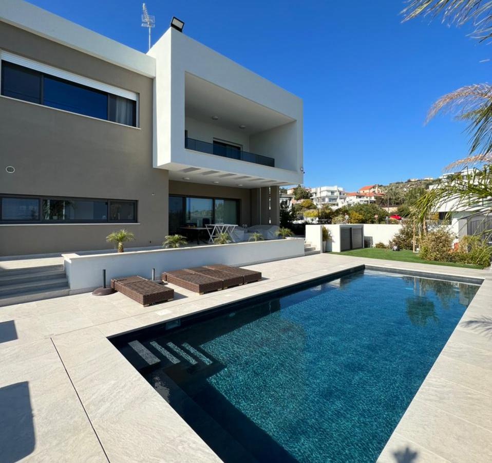 Sale of 5 bedrooms house in Agios Athanasios area, Limassol. The house has internal area 295 m2 and built on the plot 730 m2. The house has 4 bedrooms and 1 bedroom for maid. It has undefloor heating, alarm and camera system, pool, spacios parking, barbeque area and solar panels 10Kw.