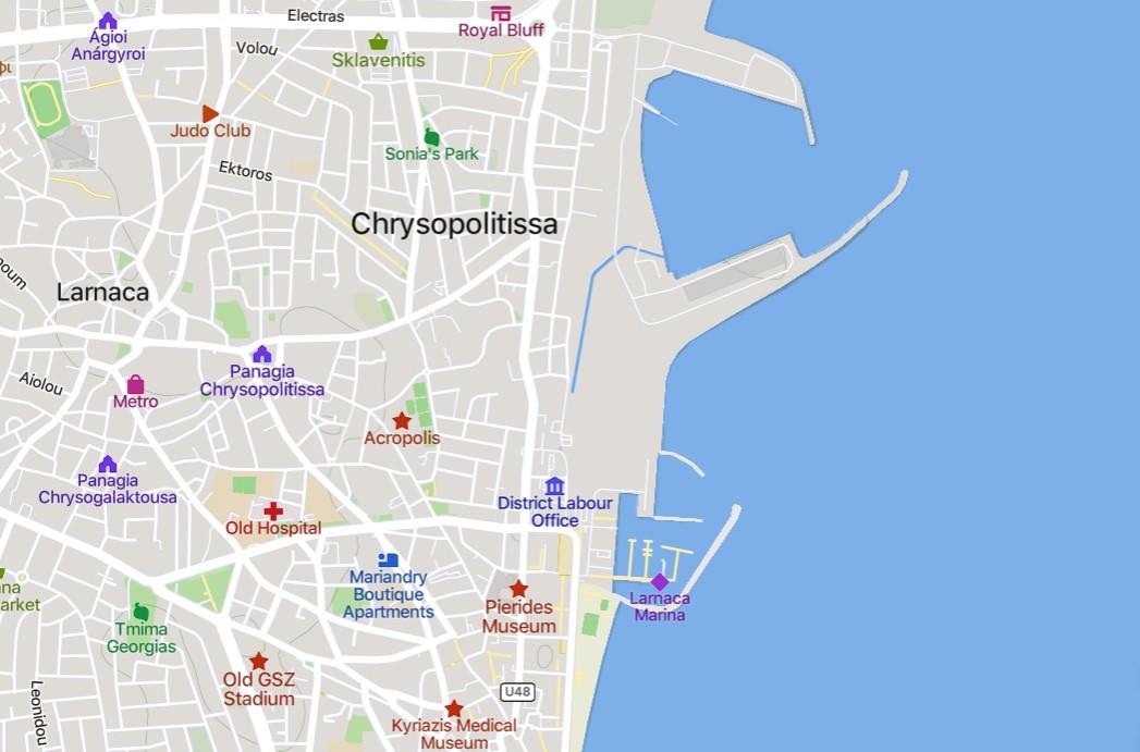 The infrastructure of the neighborhood is very diverse and it is convenient to live, work, study and lead an active lifestyle here. During the morning hours, there is sometimes a little congestion on the narrow Chrysopolitissis Street, but by midday and into the evening, traffic is moderate. The area is very close to the center and has convenient exits to the main roads towards Limassol and the capital Nicosia.