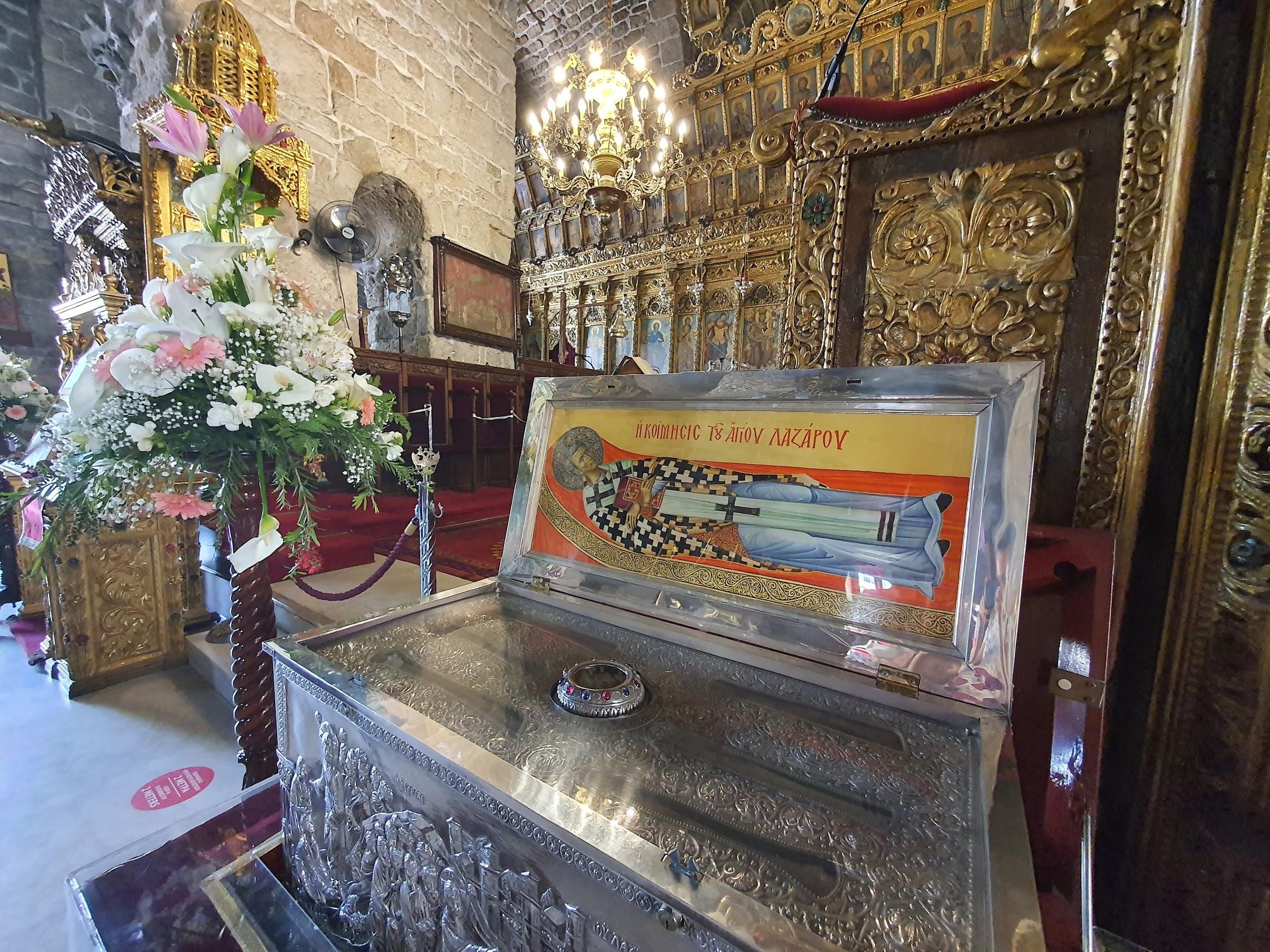 Nowadays, in the temple to the left of the iconostasis, a golden casket with the holy relics of St. Lazarus is exhibited for worship. Part of the relics of Lazarus was transferred to Constantinople, and then to Marseilles, where according to Catholic tradition Lazarus also preached.