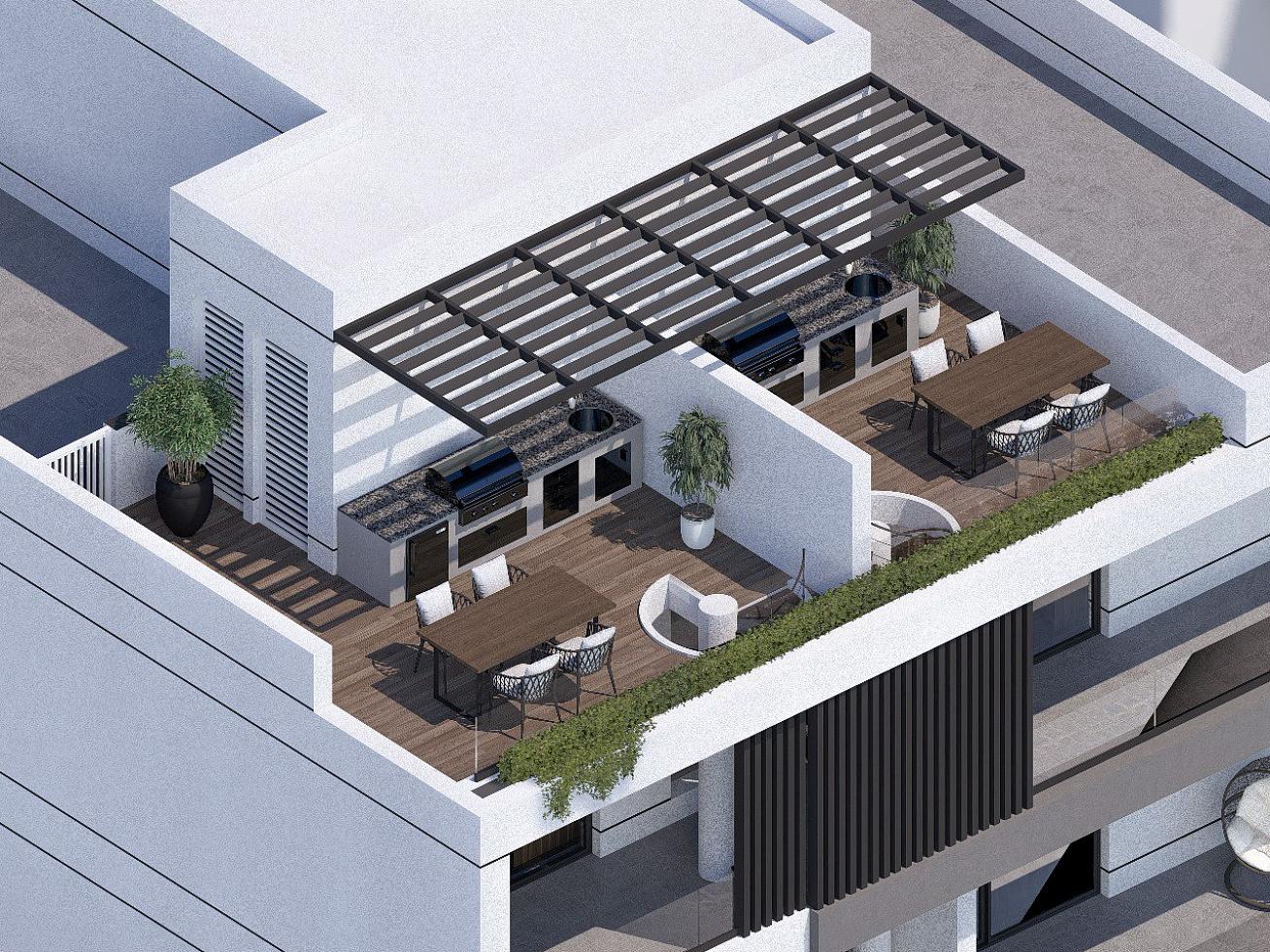 A stylish two-bedroom penthouse in a new modern complex in the Livadia area—an ideal choice for those who value comfort and privacy. The highlight of the apartment is a 33 sq m rooftop garden, perfect for creating a lounge area, barbecue space, or a cozy outdoor setting for evening relaxation.