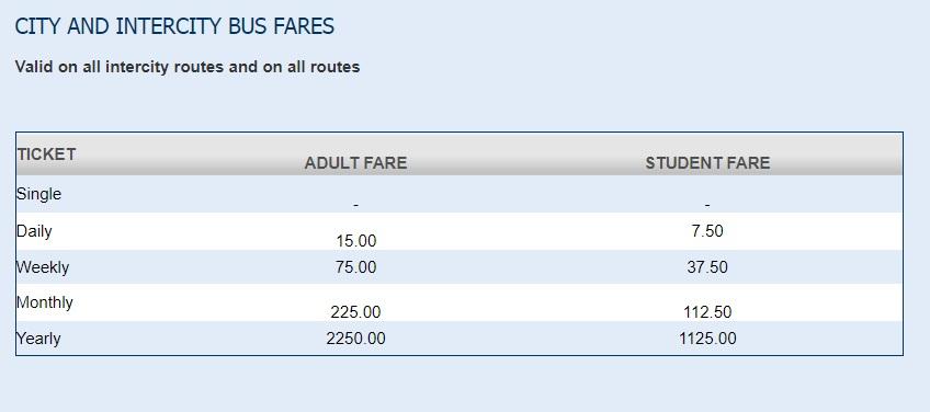 Intercity Buses offer single-trip tickets as well as long-term travel cards from a week to a year.