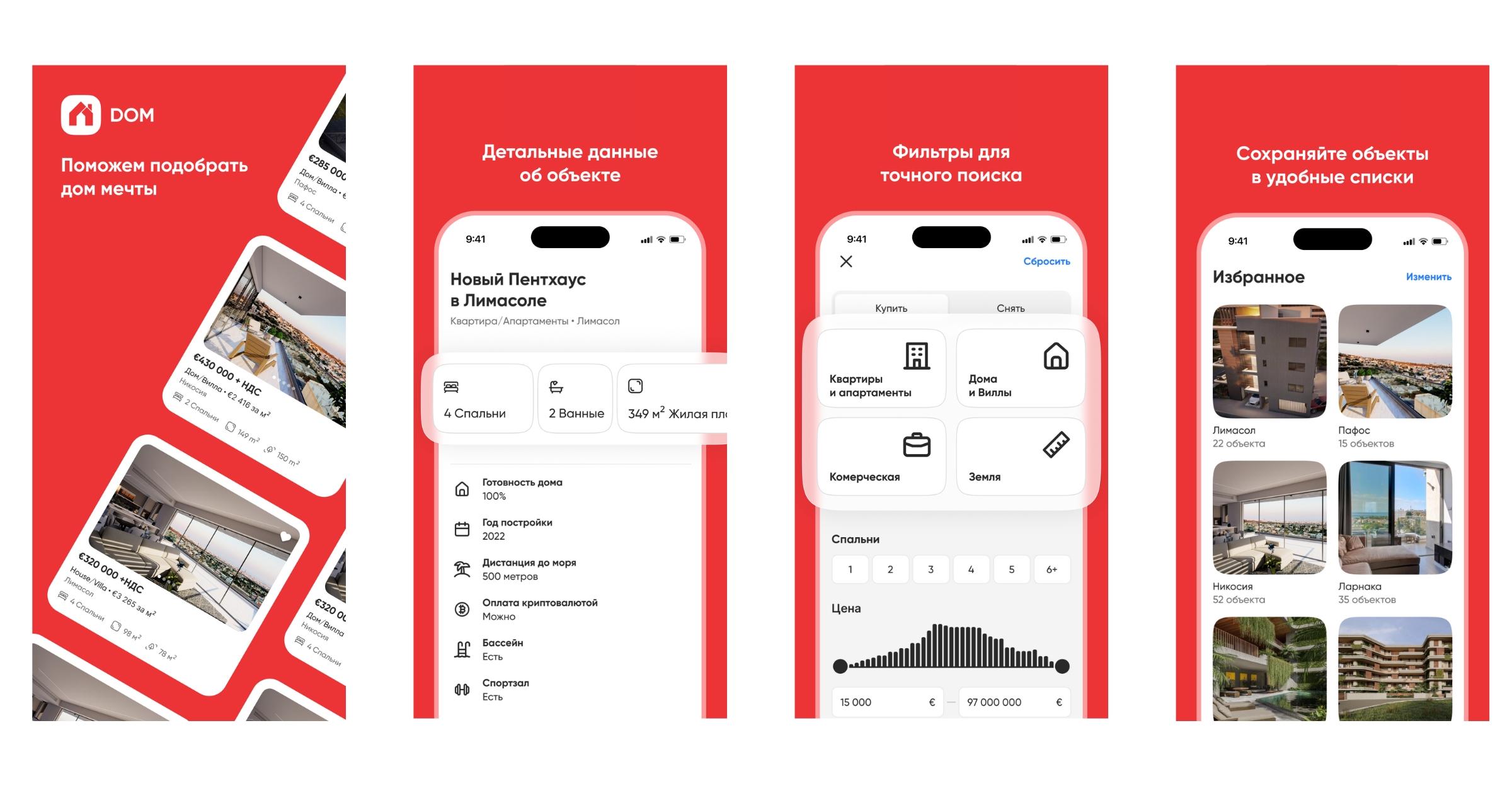 Cyprus is a place where you want to live. DOM is an app that can help make that dream a reality. Imagine having a personal agent in your pocket who works around the clock, knows everything about the Cypriot property market, and can show you the best offers in seconds, from cosy city centre apartments to luxurious seaside villas. DOM is an intuitive, visually appealing, and powerful platform designed specifically for those who want to buy, sell, rent, or invest in property in Cyprus. It contains only the most up-to-date options across the island — over seven million square metres of real estate! Using the app's filters, you can take your time to choose a property to rent or buy, view photos, read descriptions, find out the price, and contact an agent immediately if necessary. Additionally, DOM enables you to list and manage your properties through your personal account.