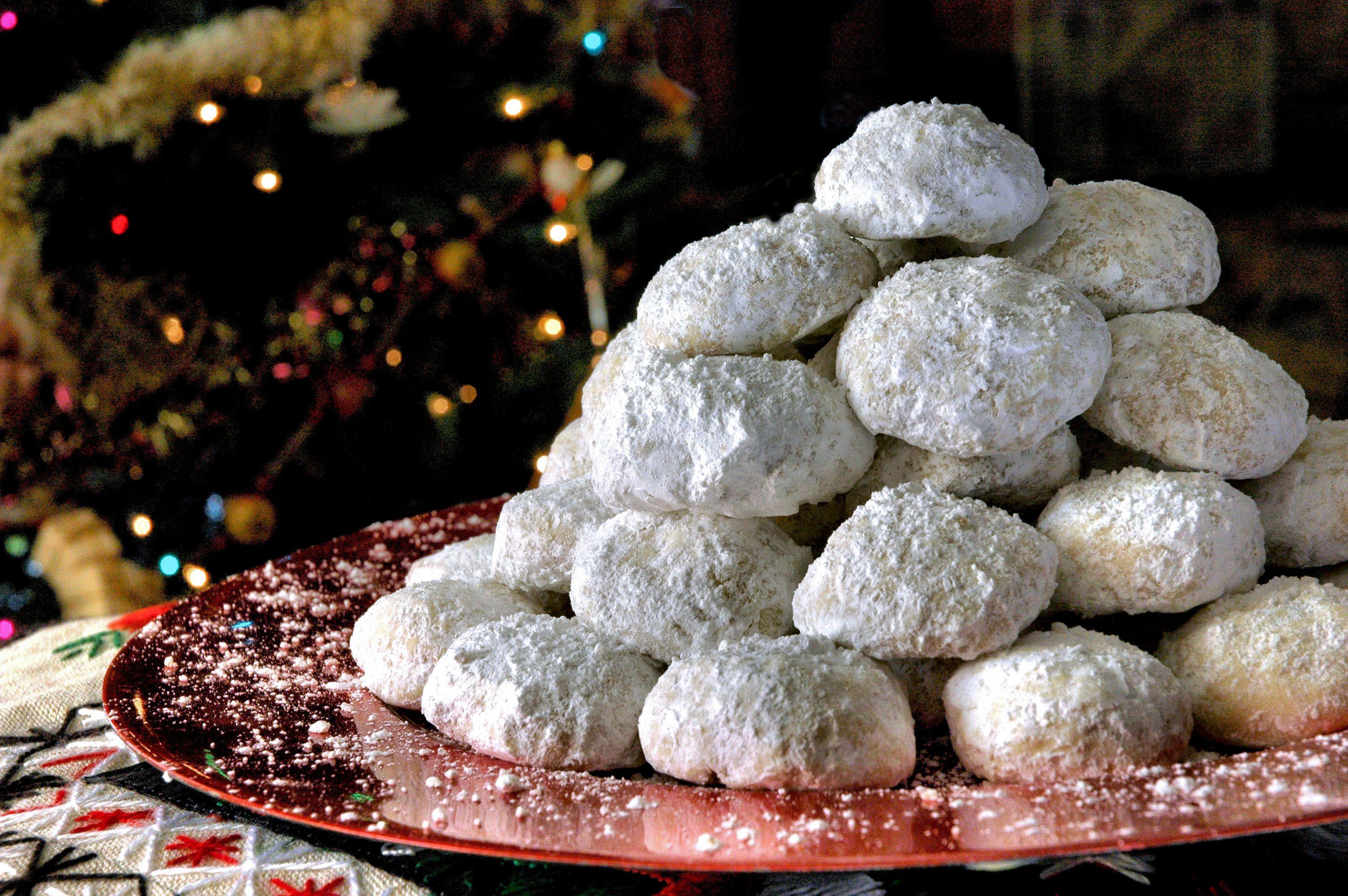 It's customary to bake local sweets or cookies for Christmas. Usually there are two main varieties: «kourabiedes» — local shortbread cookies with almonds, heavily sprinkled with powdered sugar on top, and «melomakarouna» — traditional Christmas sweets with walnuts, orange zest, cinnamon and honey syrup.