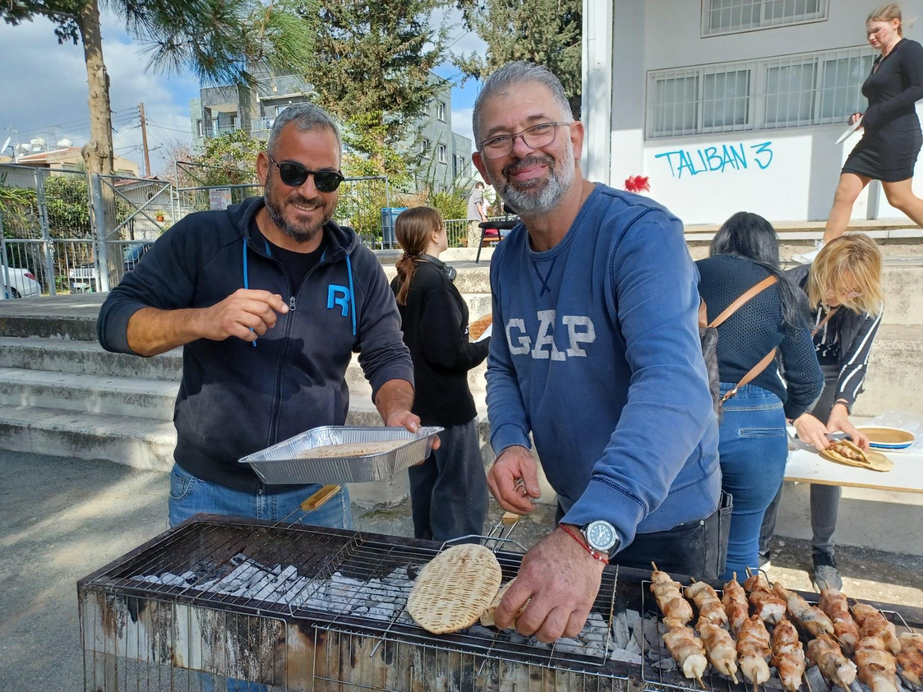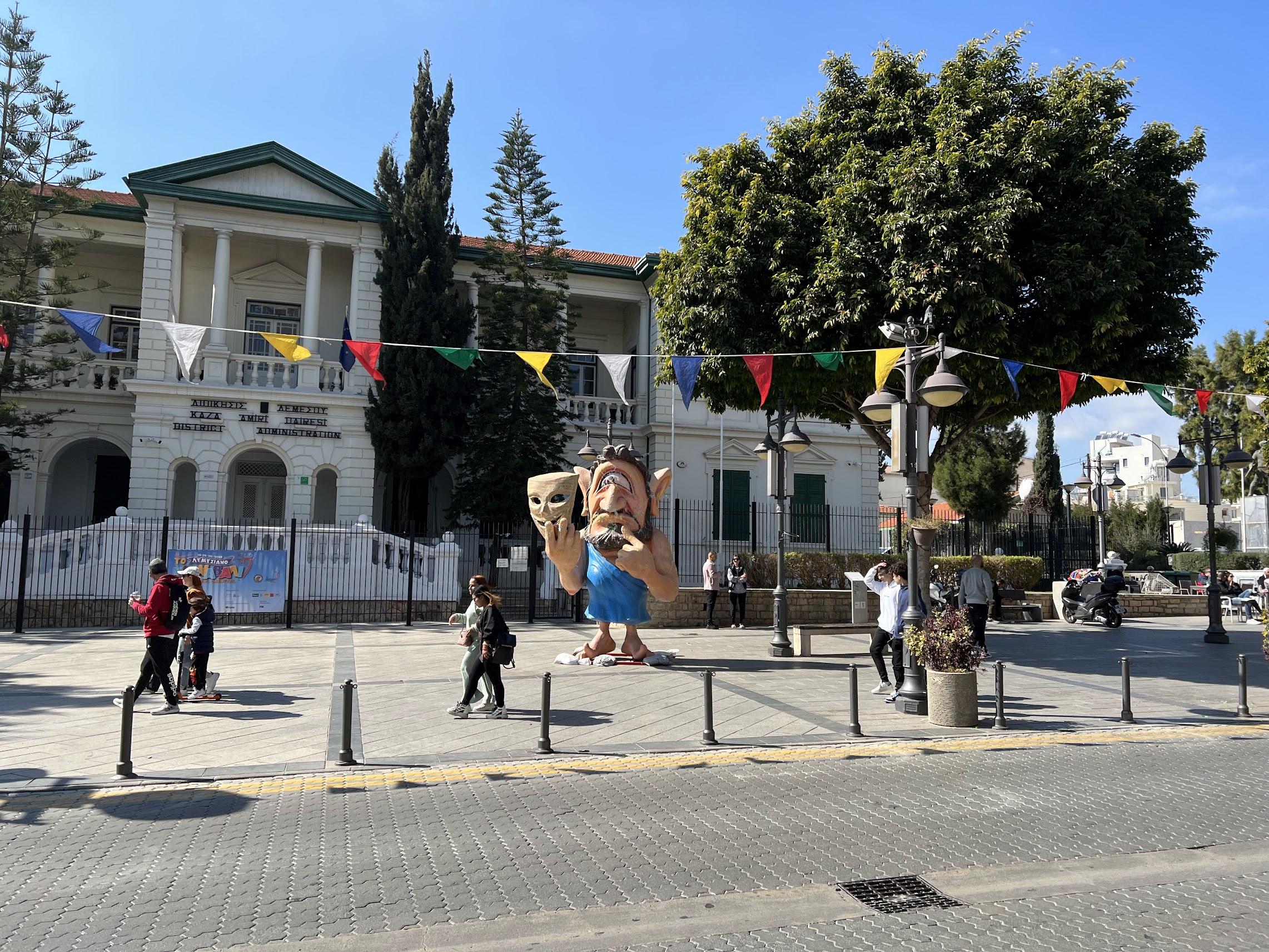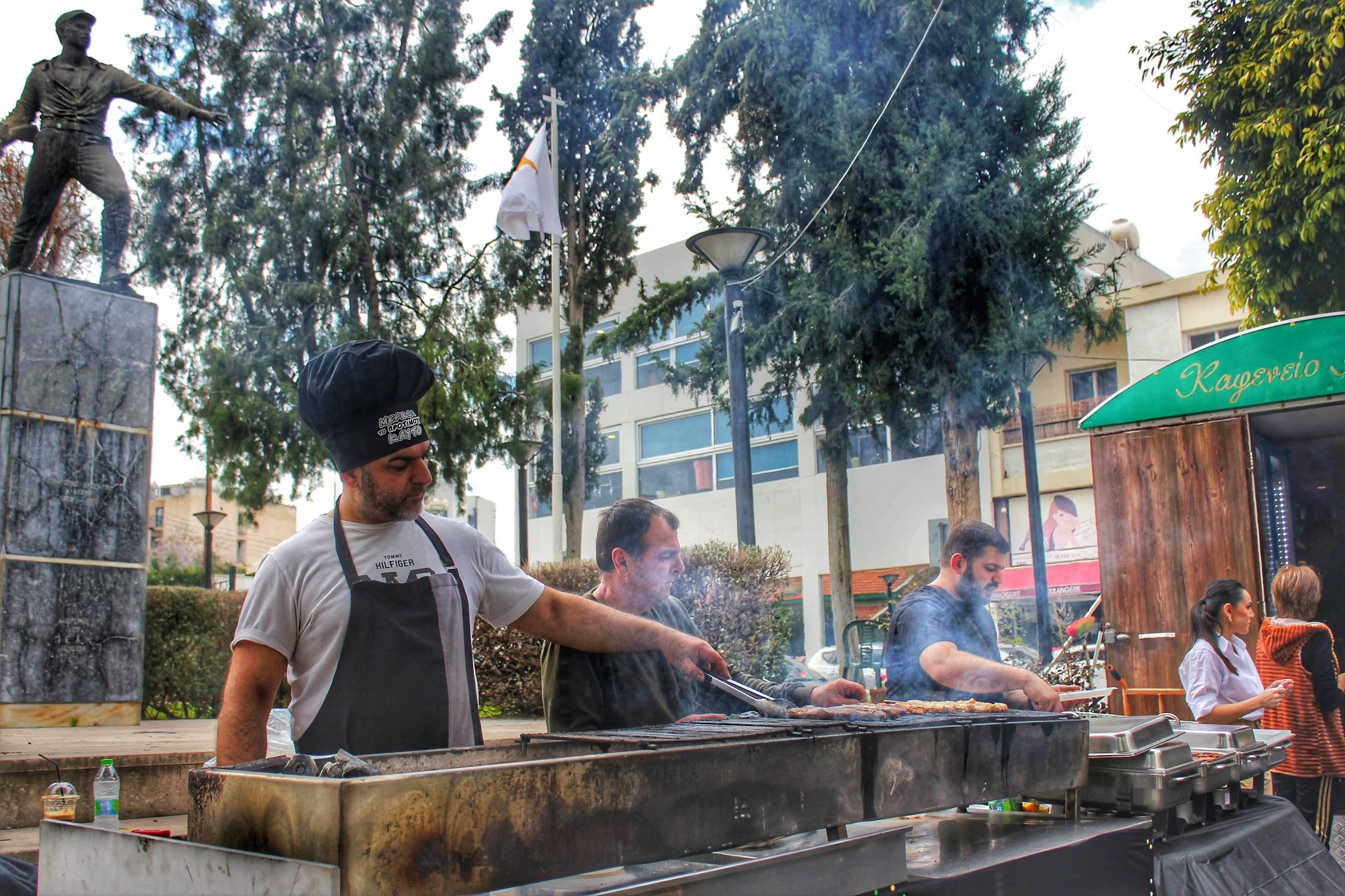 On this day, even those who don't know how to cook turn the spits with an important look. Friends and colleagues gather to grill together, then eat meat and drink local wine (and how could they not?), discuss life, politics, the latest APOEL match and the neighbour's cat who also wants souvla. But it's not all about feasting. Cypriot towns organise street parties with music, people dressing up in funny costumes, dancing and singing. There are also competitions to see who can eat the most meat (or who can eat the most).