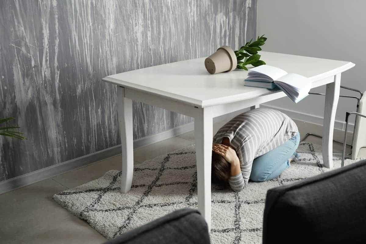 - If you are indoors, try to hide under a table or other sturdy furniture and stay away from glass objects, such as mirrors and windows.